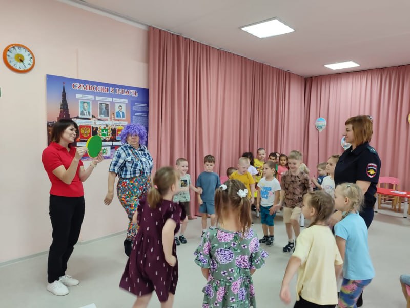 Познавательное мероприятие «Знатоки ПДД!» в детском саду «Ромашка» прошло в форме игры, во время которой юным участникам дорожного движения напомнили о мерах безопасности на дороге. Воспитанники вместе с полицейскими и педагогами повторили основы дорожной безопасности.
