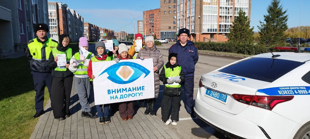 Автоинспекторы по Томскому району совместно с отрядом юных инспекторов движения Губернаторского Светленского лицея провели акцию «Внимание, пешеход».