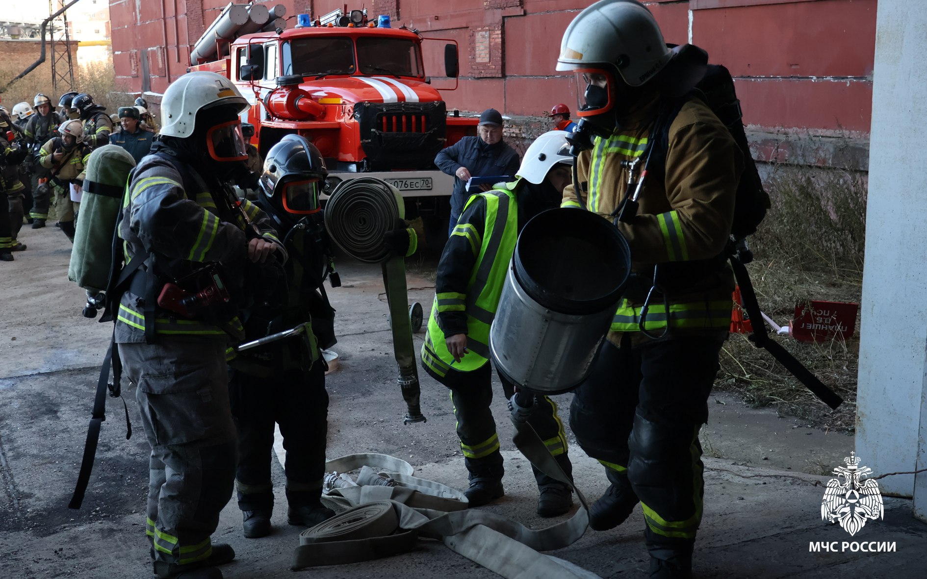 Плановые тренировочные пожарно-тактические учения прошли в Томске.По легенде возгорание произошло в котельном цехе. Предварительная площадь пожара составила 30 квадратных метров. Пожарными спасен один человек. Пострадавший с применением спасательного устройства был выведен на свежий воздух.