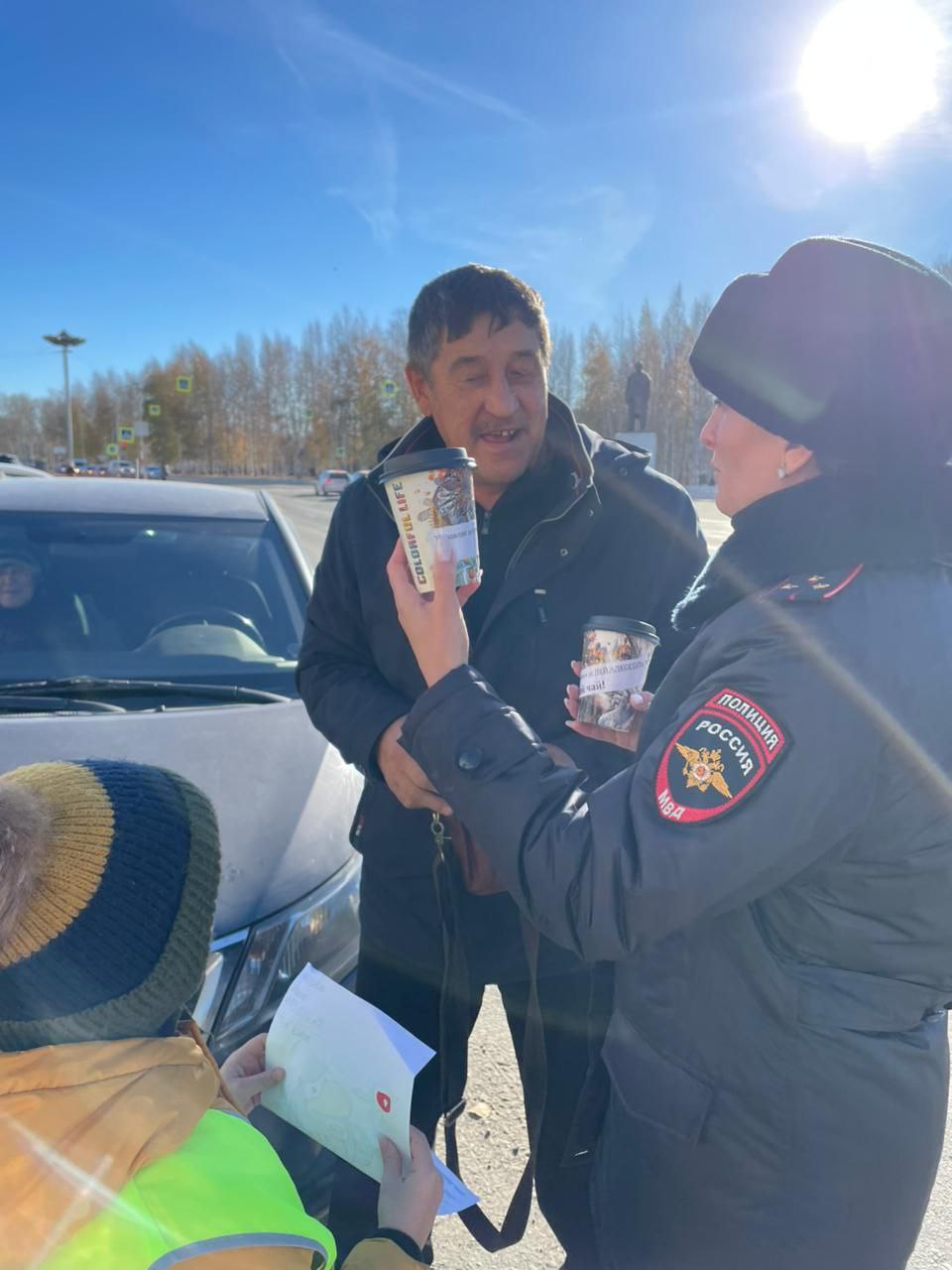 В рамках акции каждому участнику вручили стаканчик с горячим чаем, с надписью-призывом водителям: «Управляя автомобилем, не пей алкоголь, а пей чай!».