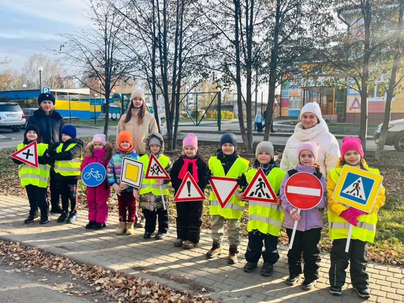 C помощью ярких макетов дорожных знаков дошкольники призывали водителей быть внимательнее и осторожнее при управлении автомобилем, снижать скорость при приближении к пешеходному переходу и на участках дороги, где возможно появление детей. Безопасность на дороге зависит в первую очередь от внимательных действий не только водителей, но и всех участников дорожного движения.
