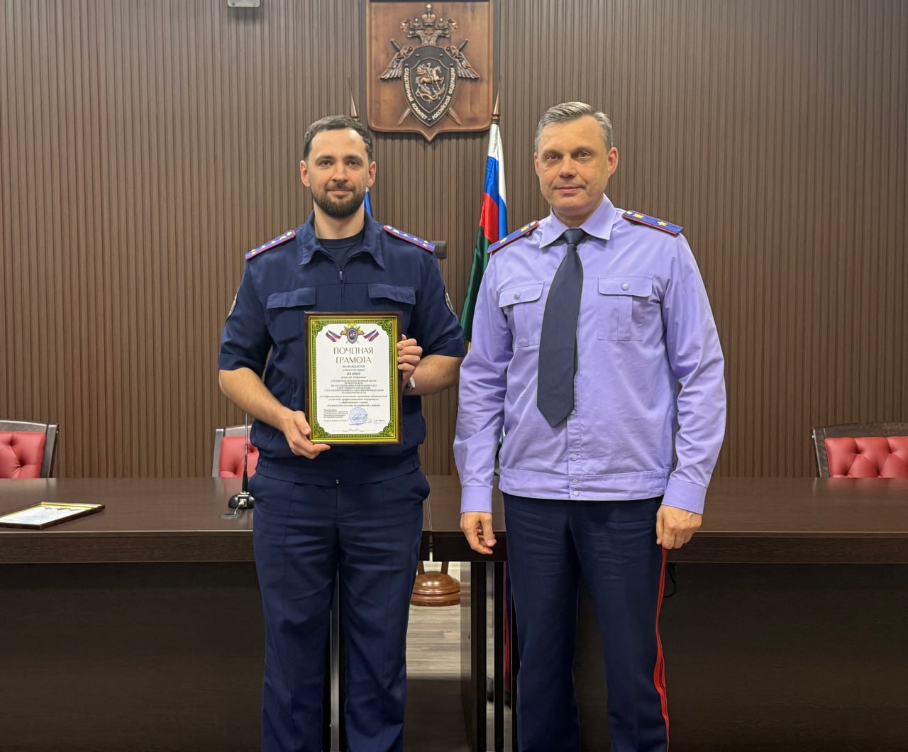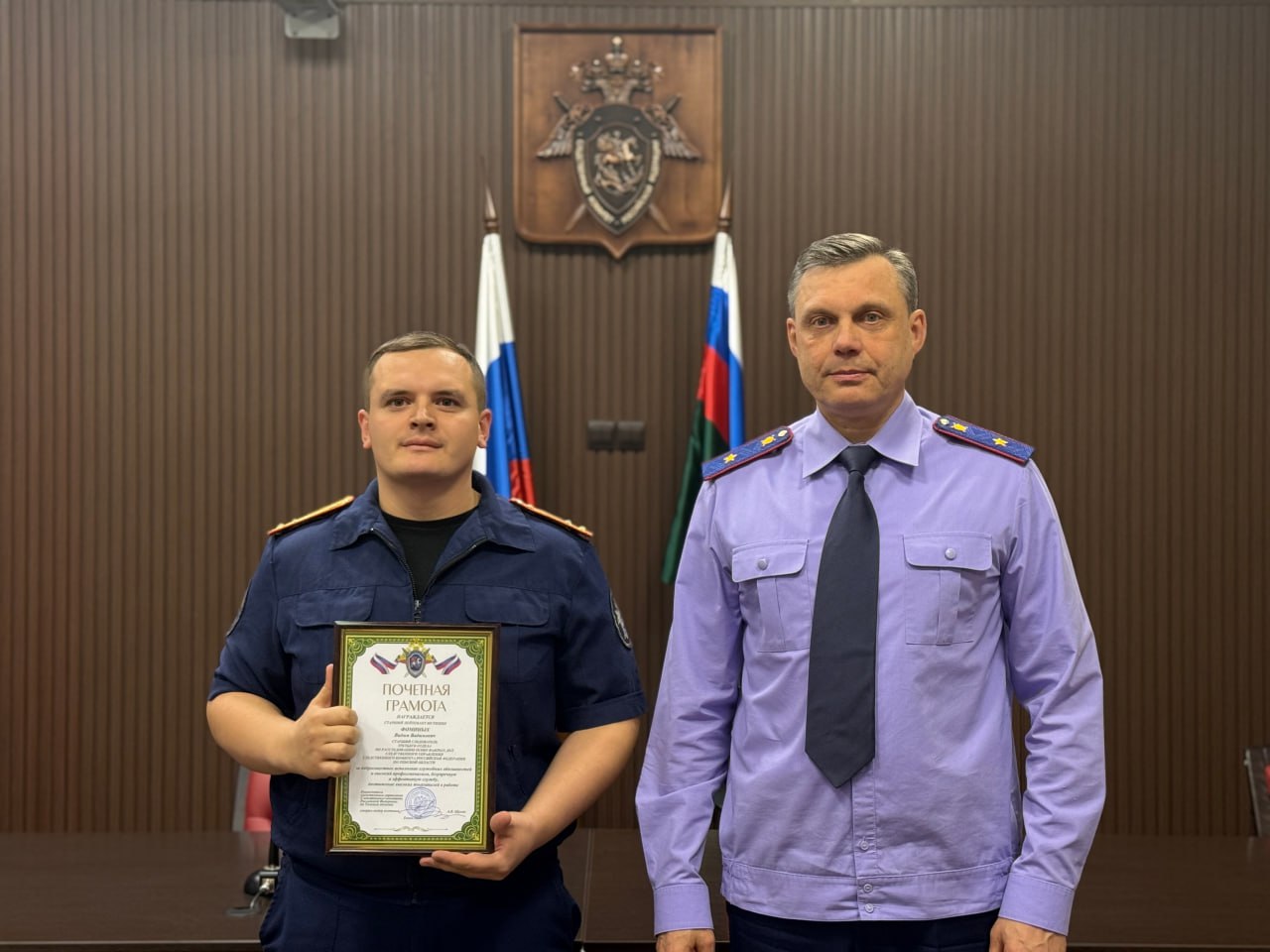 За добросовестное исполнение служебных обязанностей, высокий профессионализм, безупречную и эффективную службу, а также за достижение высоких показателей в работе почетными грамотами награждены Алексей Иванюк – следователь по особо важным делам первого отдела по расследованию особо важных дел следственного управления и Вадим Фоминых – старший следователь третьего отдела по расследованию особо важных дел следственного управления.
