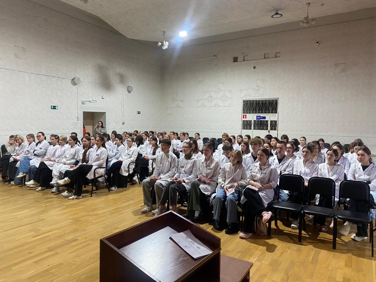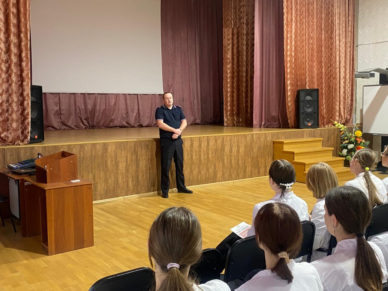 В рамках Дня правовой помощи детям с учащимися Томского базового медицинского колледжа встретился врио начальника ОМВД России по Советскому району города Томска, подполковник полиции Максим Уржумов. В мероприятии приняли участие 120 человек.