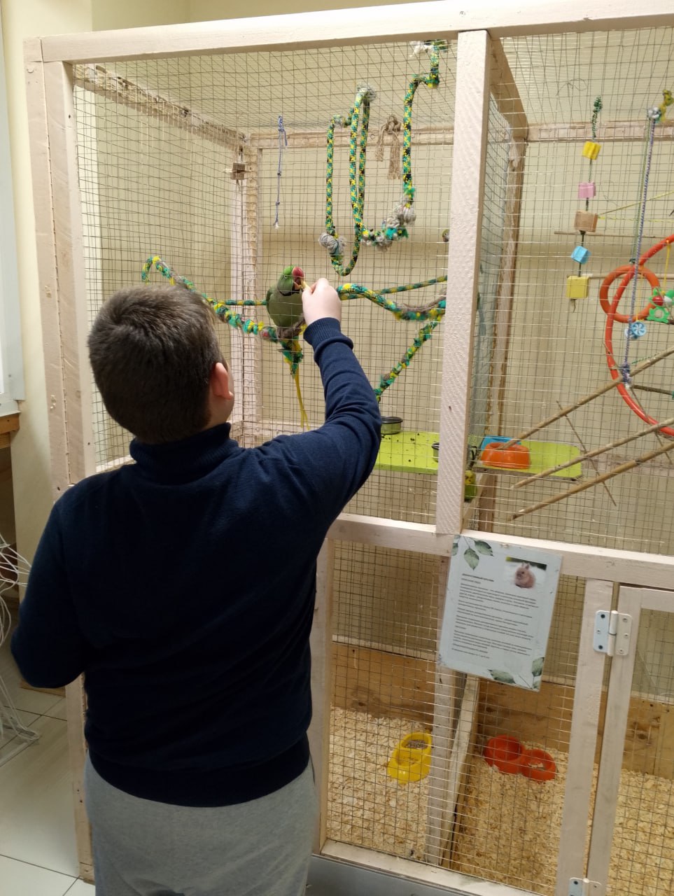В контактном зоопарке подросток познакомился с множеством красивых и интересных животных. Подросток с удовольствием слушал экскурсовода, который рассказывал ему о животных, и активно задавал интересующие вопросы.