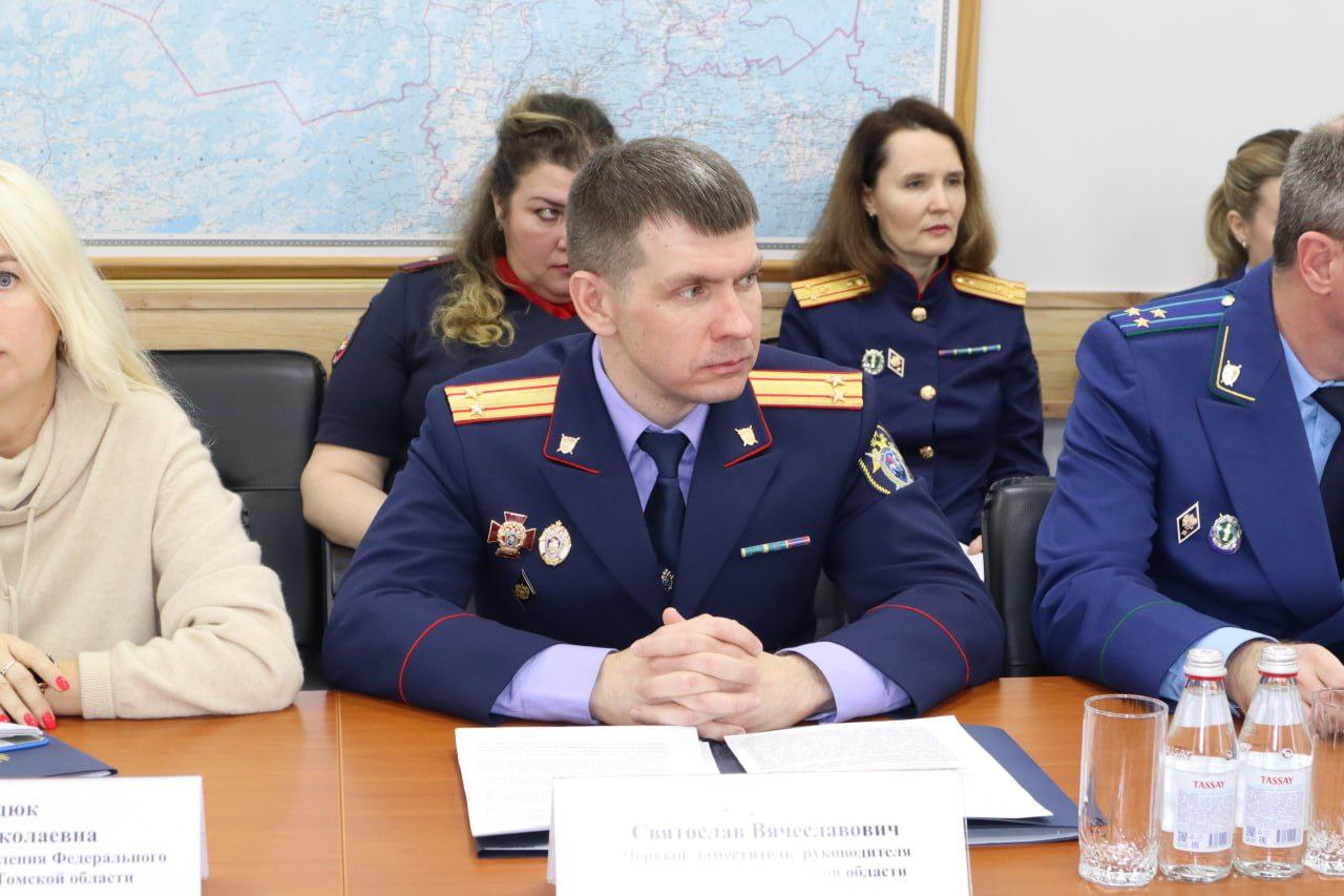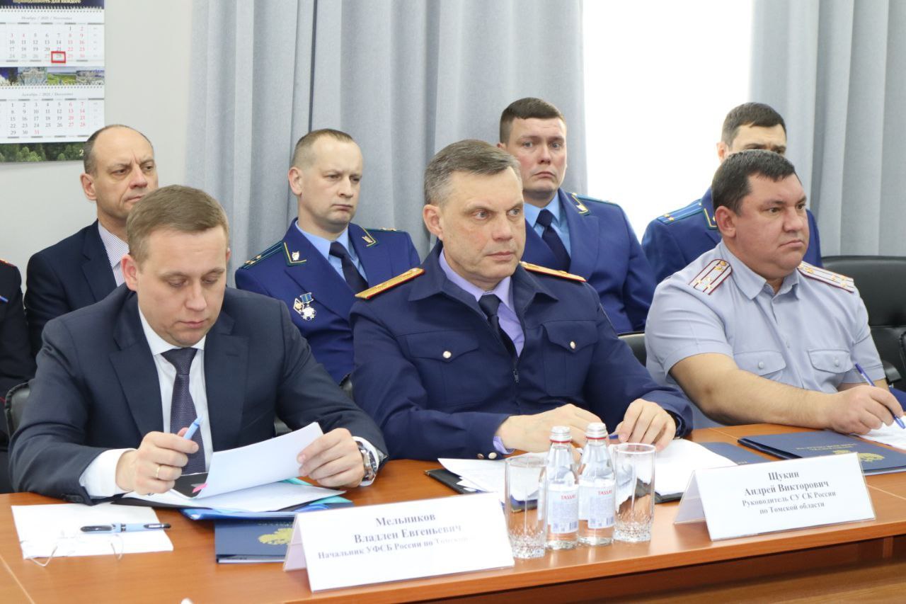 Руководитель следственного управления Следственного комитета России по Томской области Андрей Щукин, первый заместитель руководителя следственного управления Святослав Горячев и руководители территориальных следственных отделов приняли участие в заседании координационного совещания руководителей правоохранительных органов Томской области.