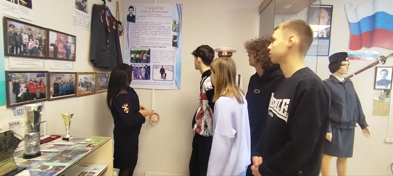 В ходе встречи учащиеся посетили комнату истории Управления и узнали о памятных событиях северской милиции и полиции, о сотрудниках, погибших при исполнении служебных обязанностей и их героических поступках.