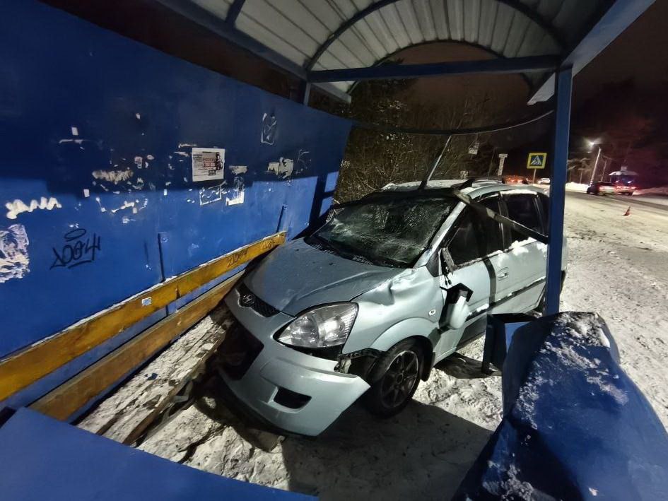 После этого автомобиль продолжил движение и совершил наезд на остановочный комплекс.