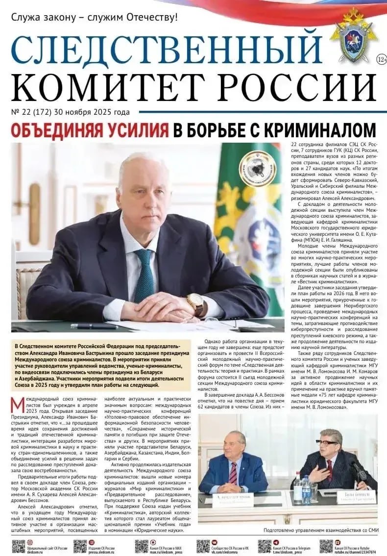 На официальном сайте Следственного комитета Российской Федерации в разделе «Издания Следственного комитета России» размещен очередной номер газеты «Следственный комитет России» (№ 23 от 15 декабря 2025 года).