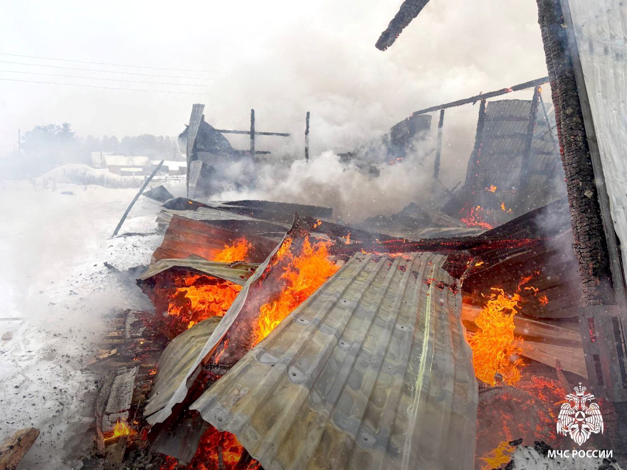На улице Зелёной в селе Семёновка Зырянского района обгорела и обрушилась обрешётка крыши и стены гаража. Пожар на площади 90 квадратных метров ликвидировали 9 огнеборцев с применением 3х единиц техники (фото).