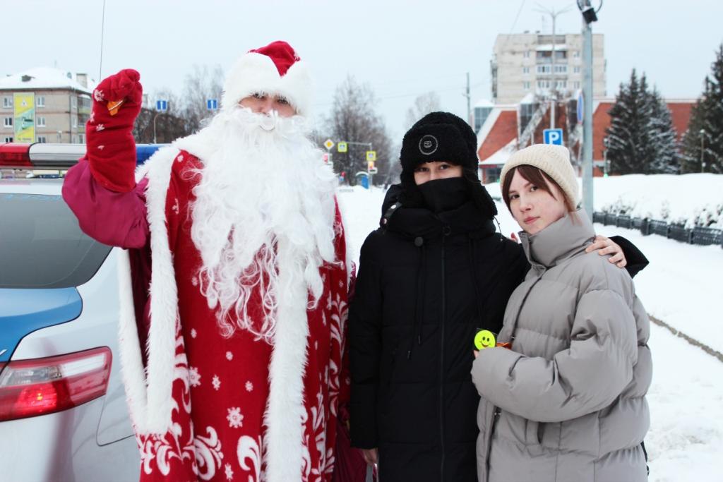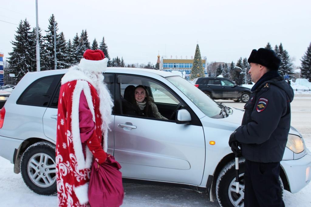 Сотрудники полиции и члены Общественного совета поздравили северчан с наступающим Новым годом. Полицейские напомнили водителям и юным пешеходам о Правилах дорожного движения, а также подарили сладкие подарки.
