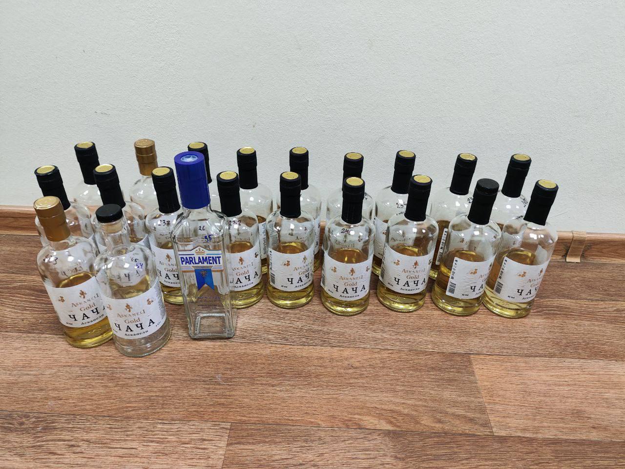 В ходе обысков в гаражных помещениях правоохранителями было изъято более 100 литров алкоголя в бутылках с фирменными этикетками и 20 литров спирта в канистрах общей стоимостью более 100 тыс. рублей.