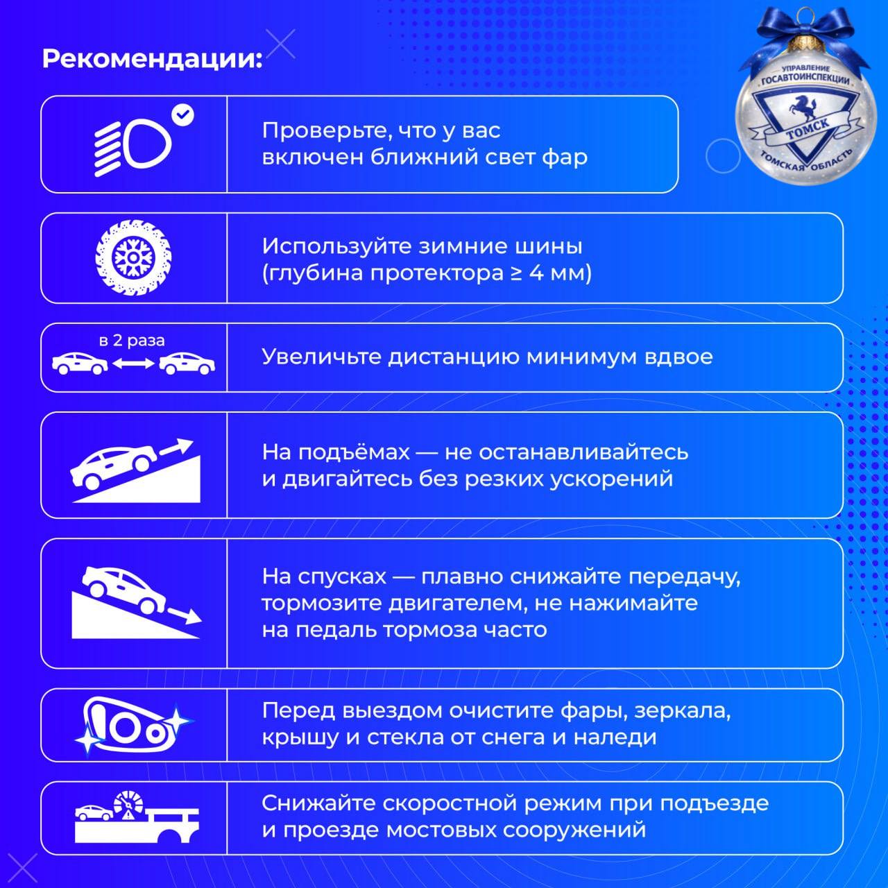 В инфографике собраны простые и важные рекомендации, которые помогут водителям сохранить контроль, снизить риск ДТП и позаботиться о безопасности всех участников движения