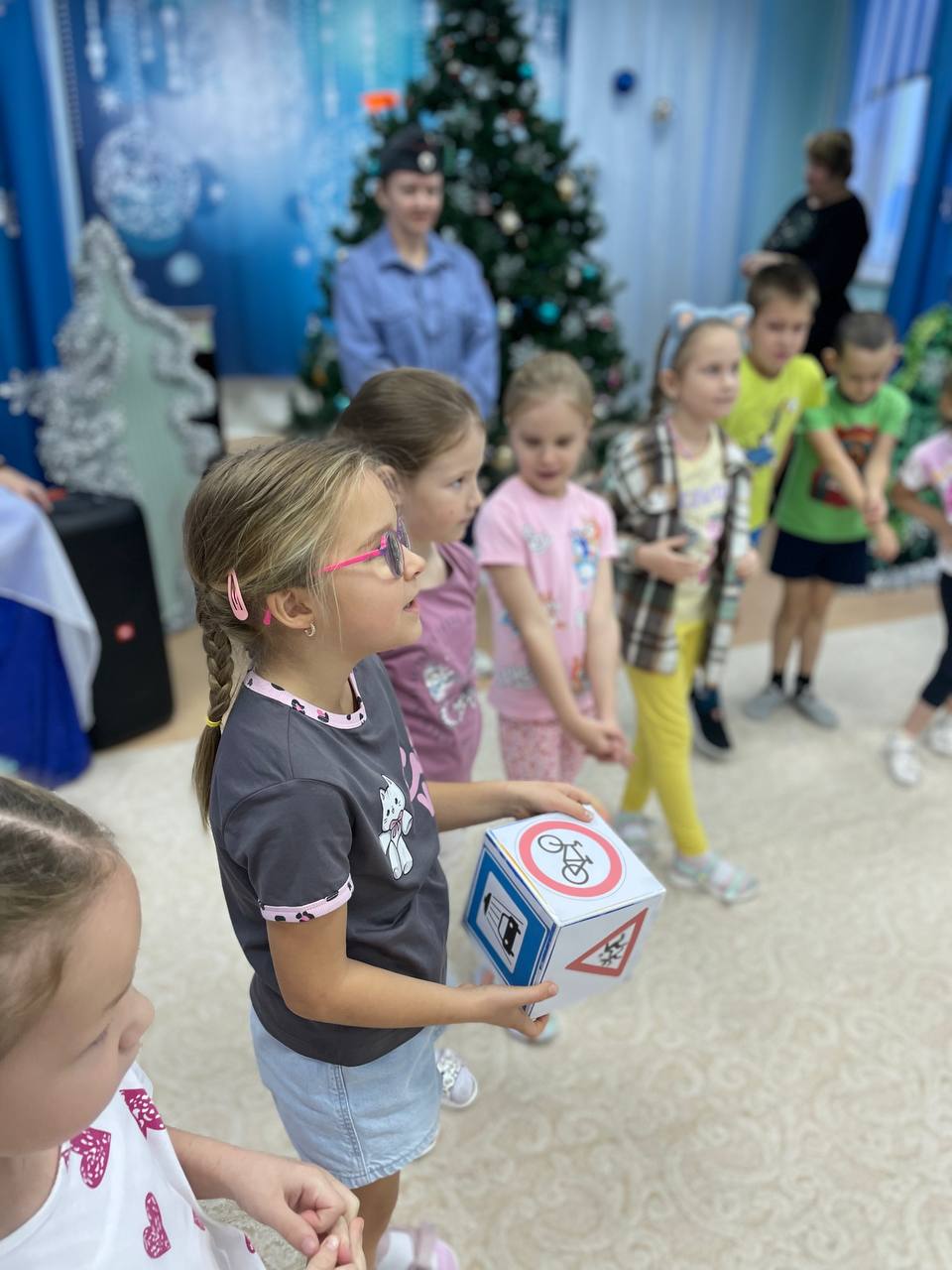 Ребята поиграли в игру кубик-ПДД,где каждый ребенок показал свои знания дорожных знаков. В завершение мероприятия представитель Стрежевской Госавтоинспекции вручила световозвращающий значок.