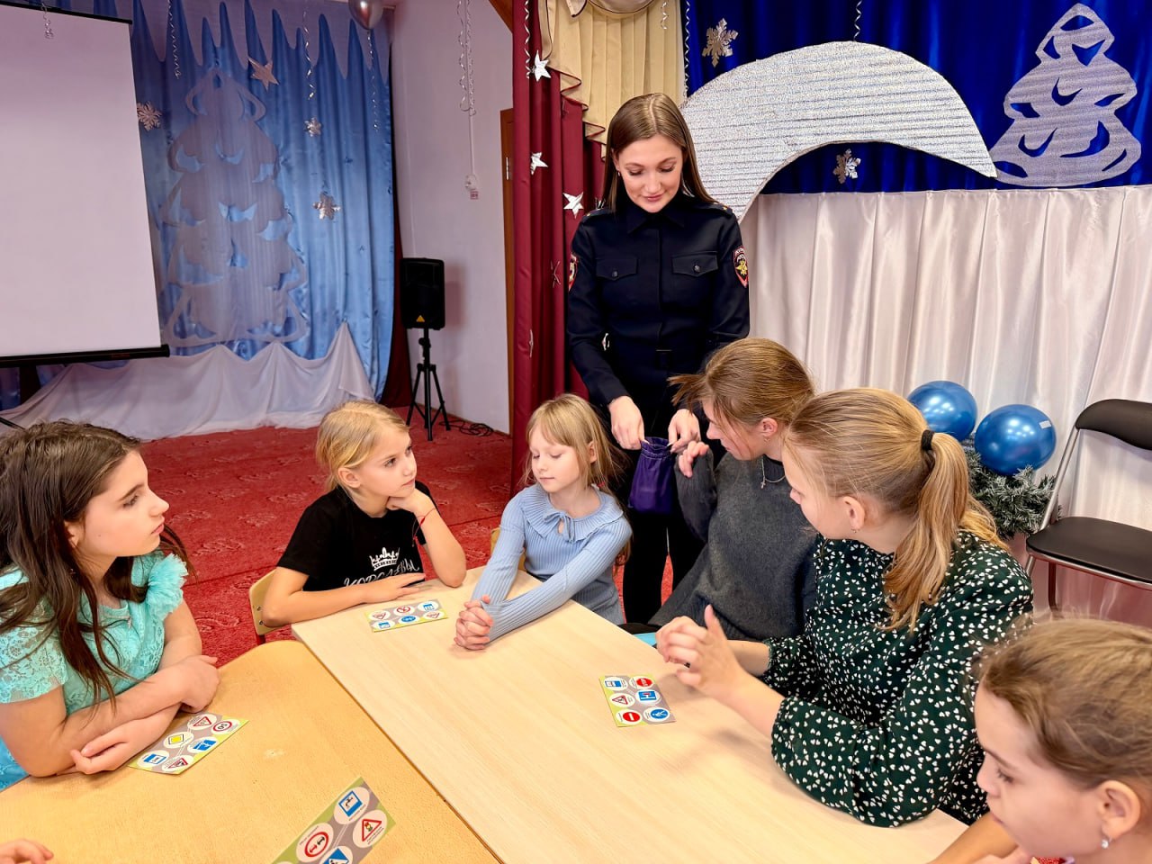 В ходе мероприятия Госавтоинспектор рассказала детям из группы дневного пребывания о правилах поведения на улице зимой. О том, что в темное время суток необходимо использовать световозвращающие приспособления и недопустимо кататься на санках и «плюшках» в близи проезжей части.