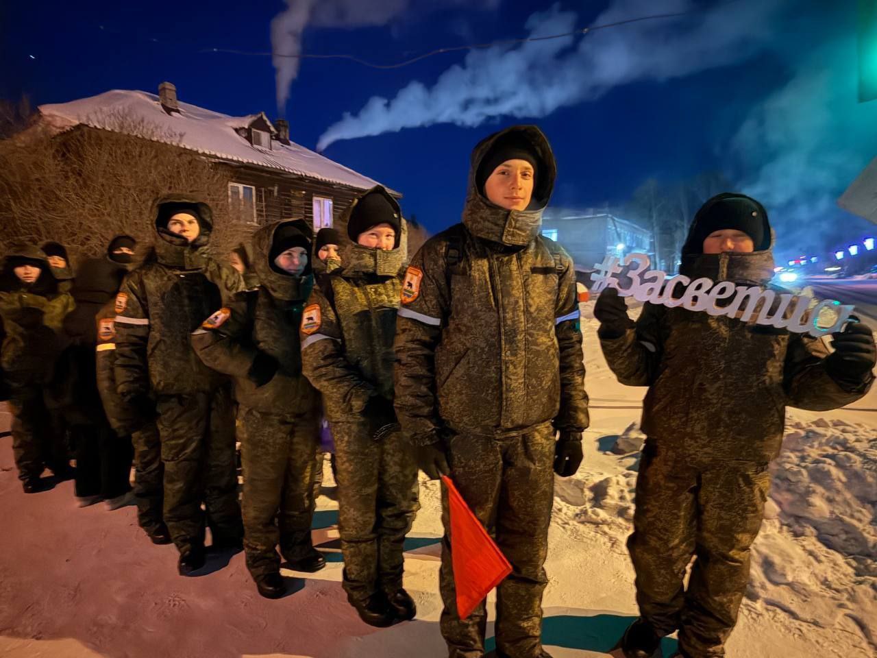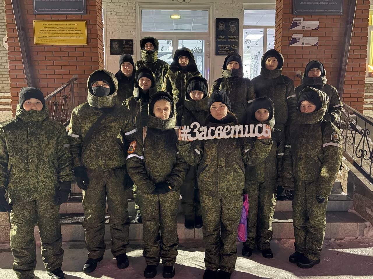 Кадеты выстроились стройным маршем и прошлись по улицам города, привлекая внимание ярким лозунгом «Засветись!».