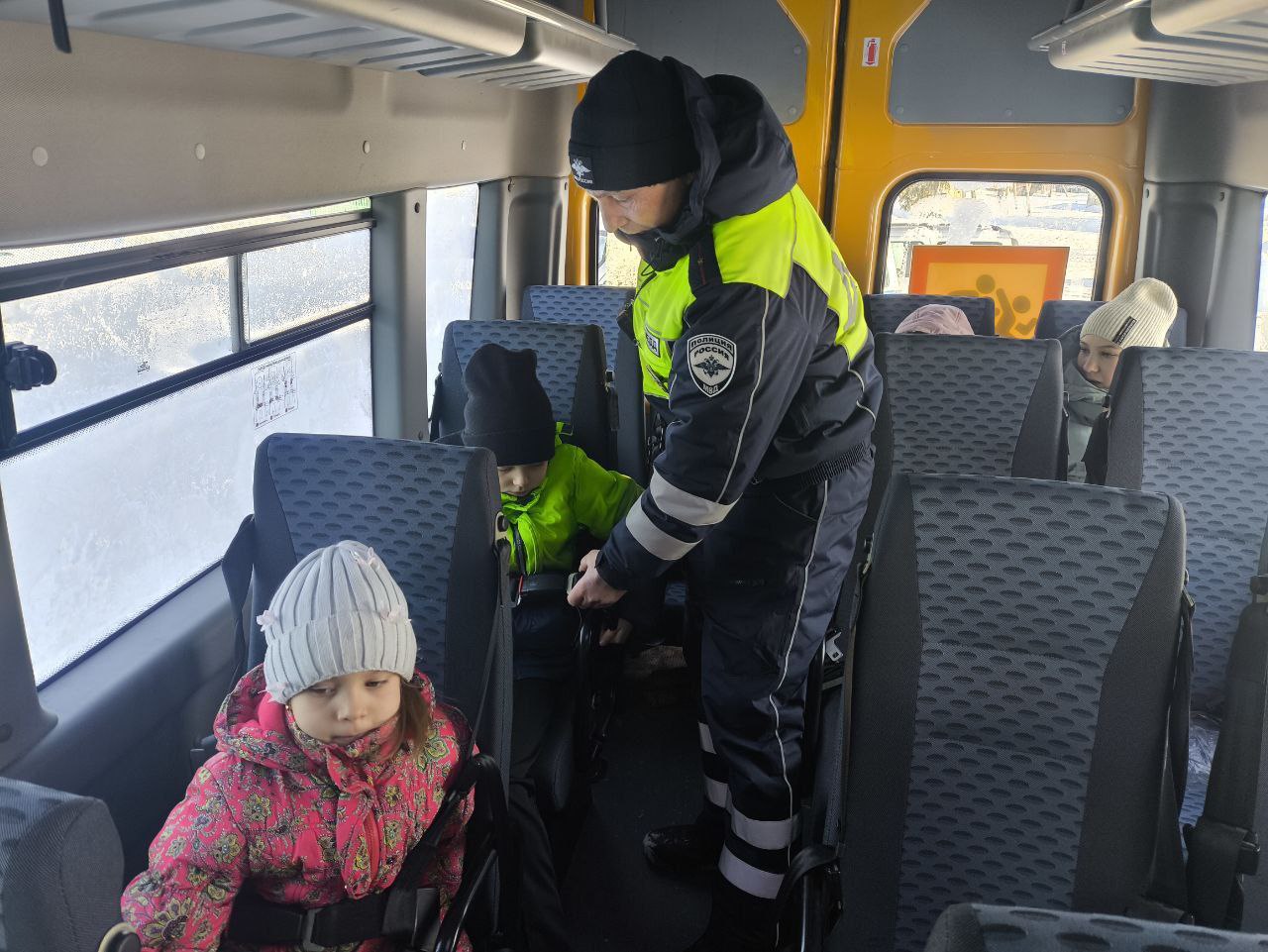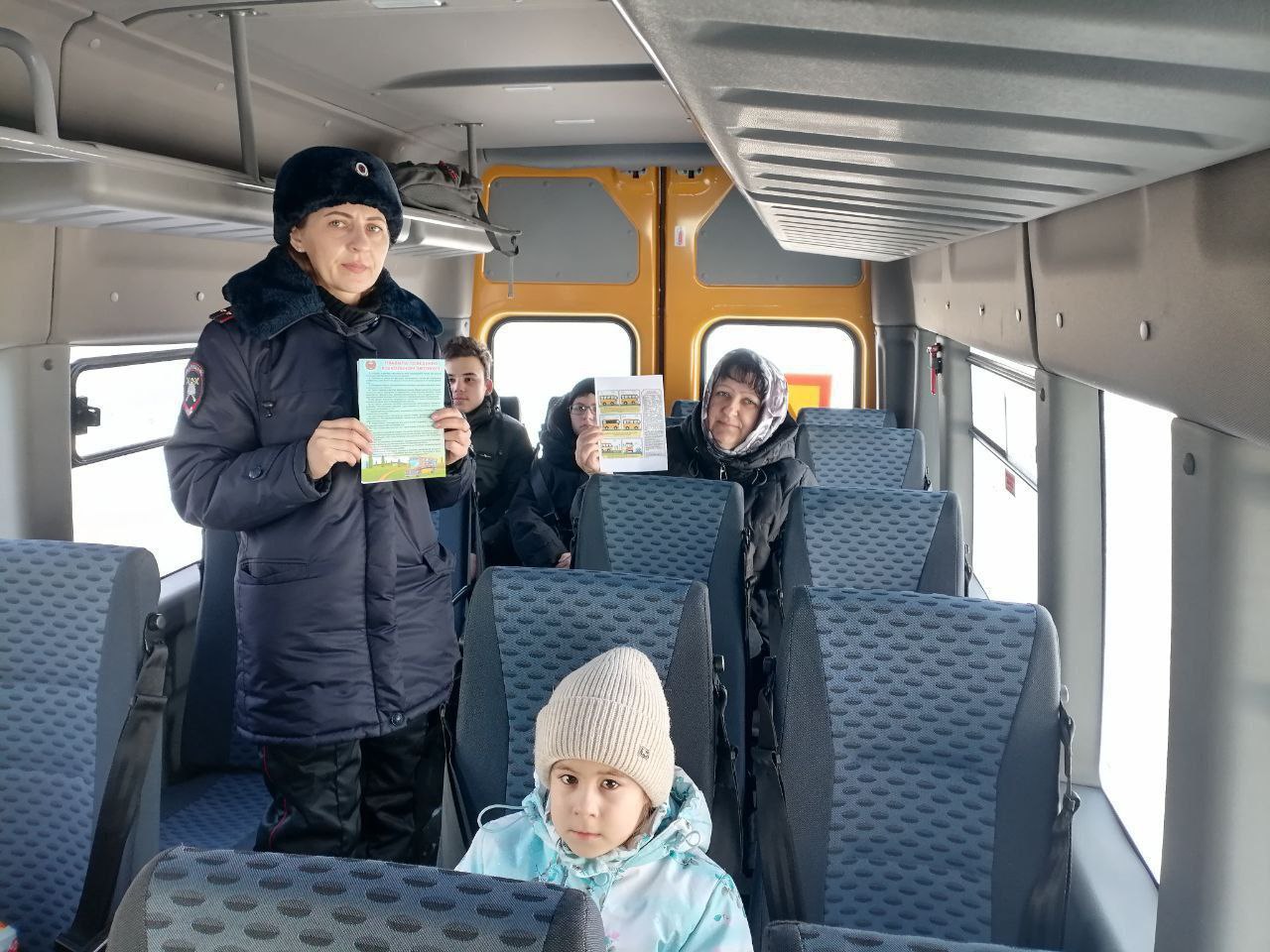 Сотрудники полиции рассказали юным пассажирам о дорожной безопасности, акцентировали внимание на правилах поведения в салоне автобуса, напомнили для чего нужны ремни безопасности и почему нужно всегда пристёгиваться не зависимо от продолжительность пути.