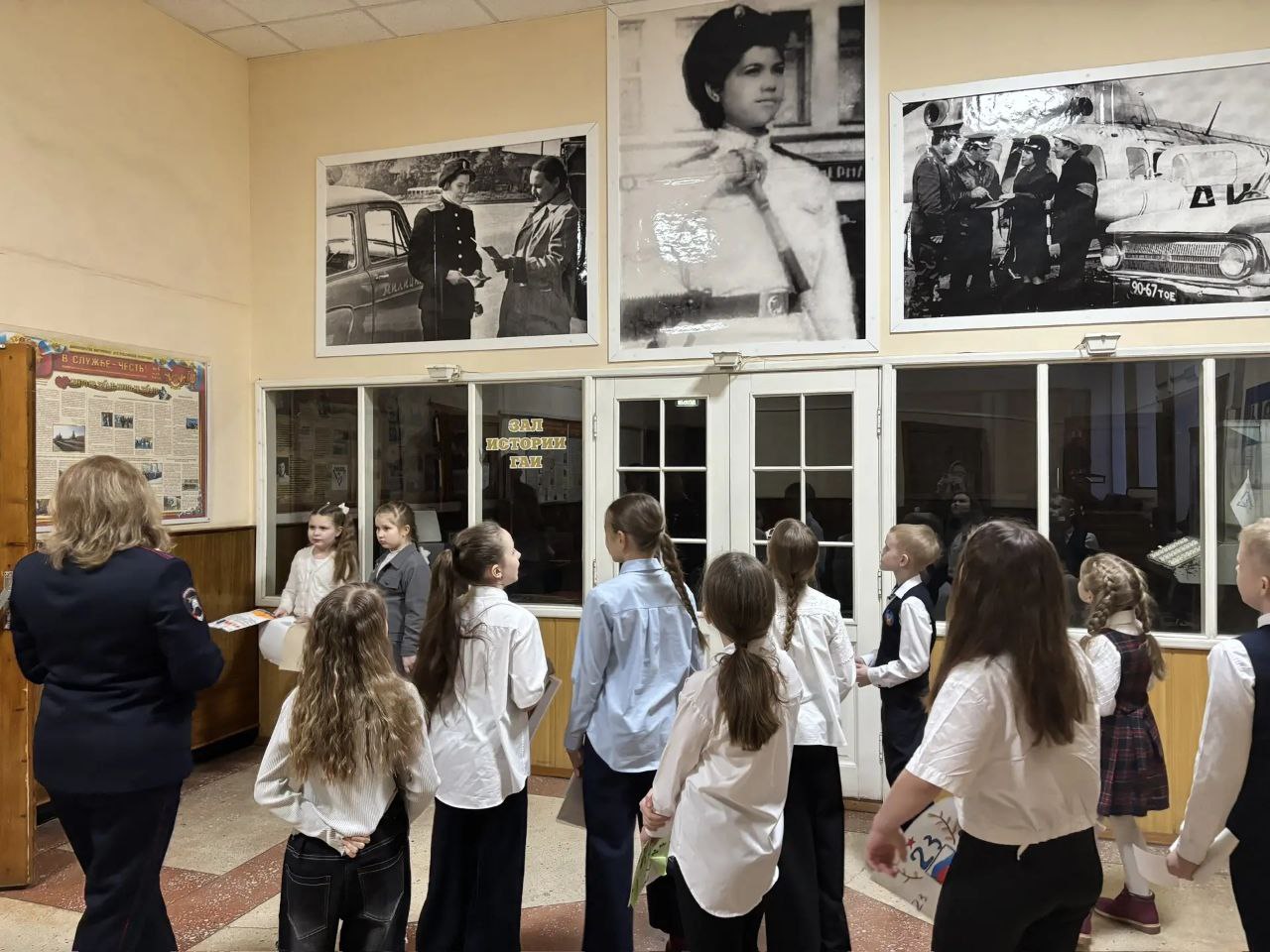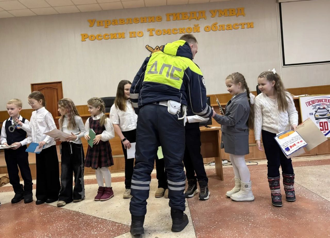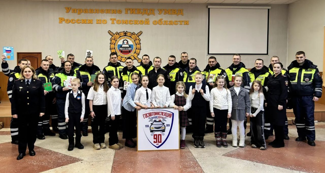 Сотрудников томской Госавтоинспекции, заступающих на дежурную смену в День защитника Отечества поздравили учащиеся гимназии N29.