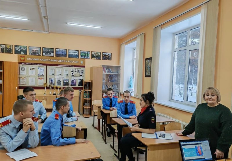 Инспектор группы информационного обеспечения Штаба УМВД России по ЗАТО г. Северск старший лейтенант внутренней службы Радмила Хрипунова встретилась с воспитанниками Северского филиала Томского Кадетского корпуса имени Героя РФ Пескового М.В. и провела урок по кибербезопасности.