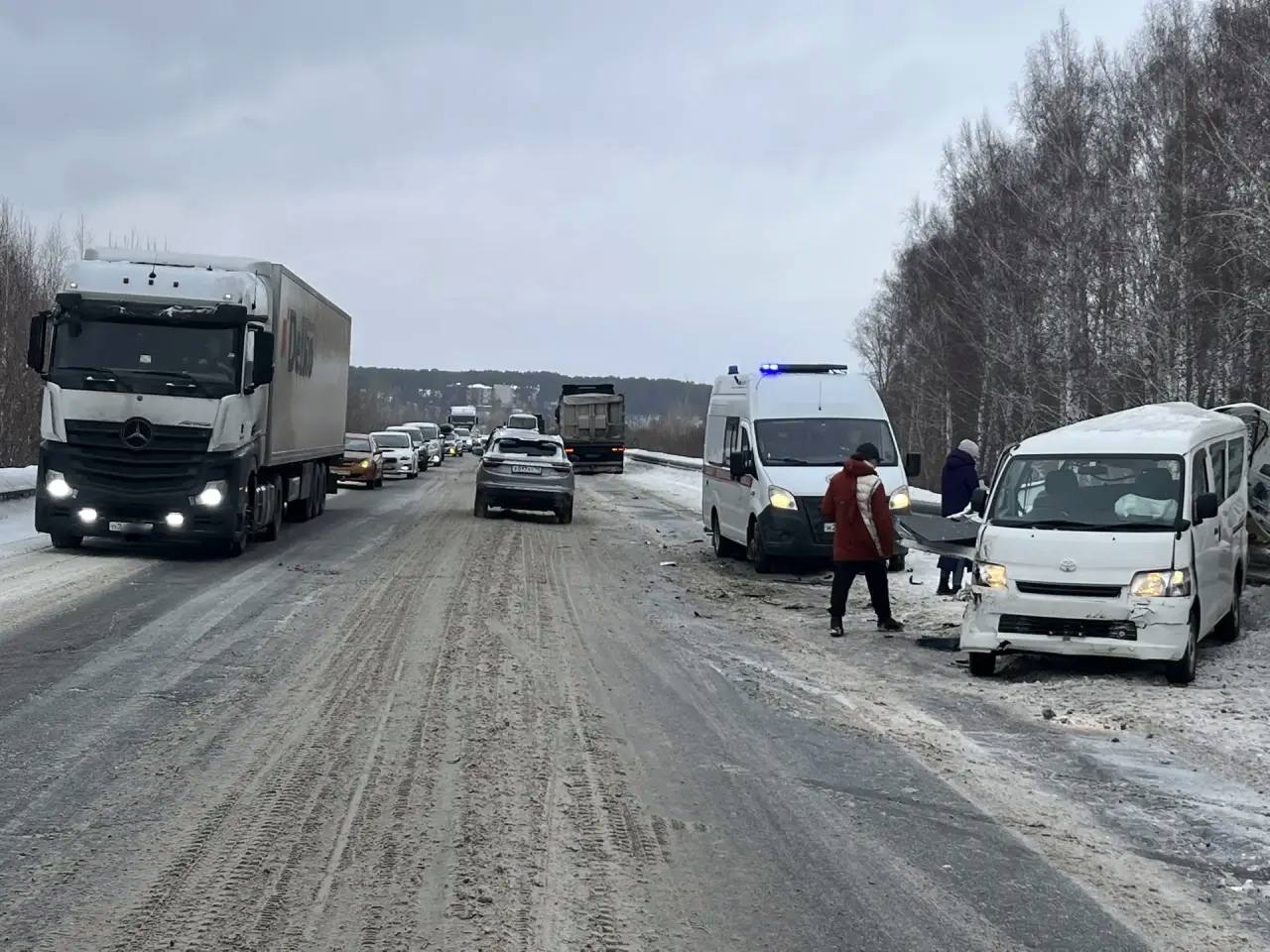 5 марта 2026 года около 17 часов 38 минут в городе Томске на Шегарском тракте, в районе Северного парка произошло столкновение двух транспортных средств тягача Донгфенг под управлением мужчины-водителя 1986 г. р. и микроавтобуса Тойота под управлением мужчины-водителя 1980 г.р.