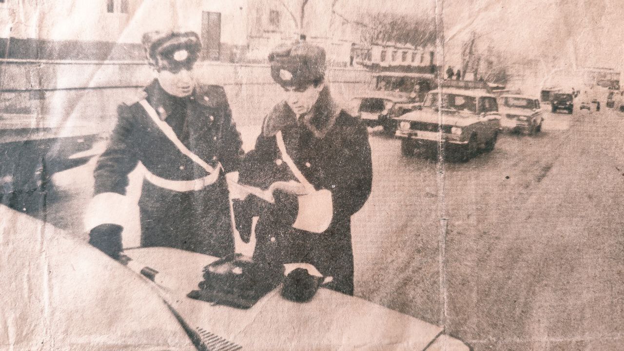 На снимке: сержант С. Гилев вместе с лейтенантом Н. Райковым несут дежурство на проспекте Ленина.