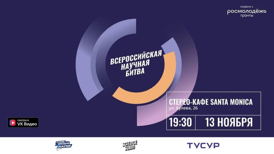 В четверг, 13 ноября, в 19.30 в кафе «Санта Моника» пройдут мероприятия Всероссийской научной битвы, где молодые ученые из разных городов представят свои исследования в доходчивой и увлекательной форме.Приглашенным спикером станет руководитель...