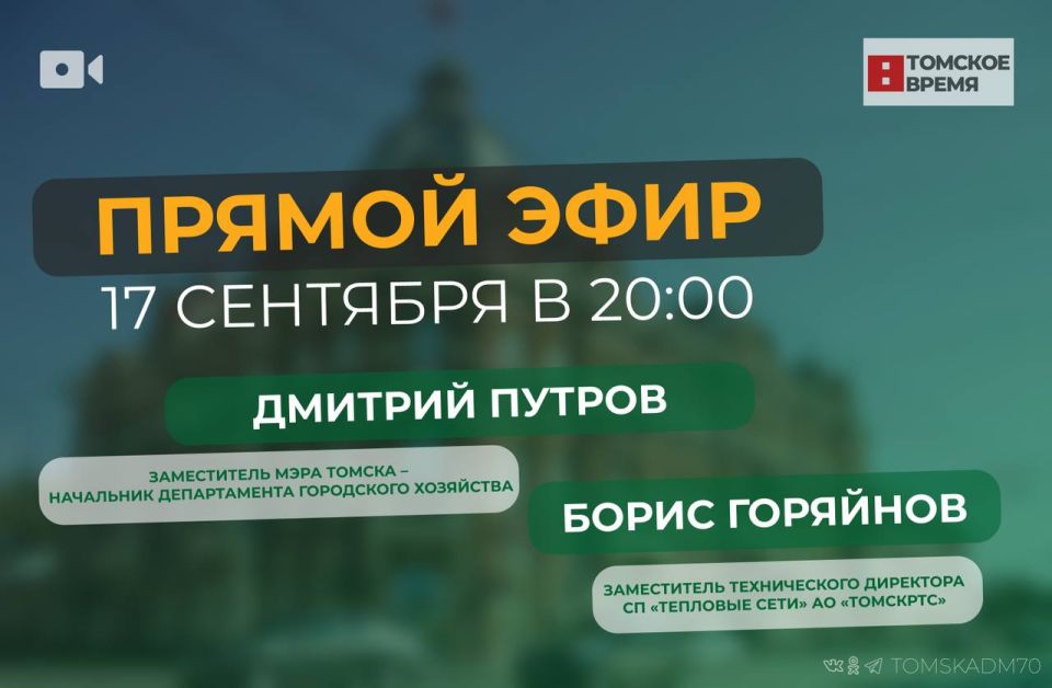 Сегодня, 17 сентября, заместитель мэра – начальник департамента городского хозяйства администрации Томска Дмитрий Путров и заместитель технического директора СП «Тепловые сети» АО «ТомскРТС» Борис Горяйнов ответят на вопросы жителей города в...