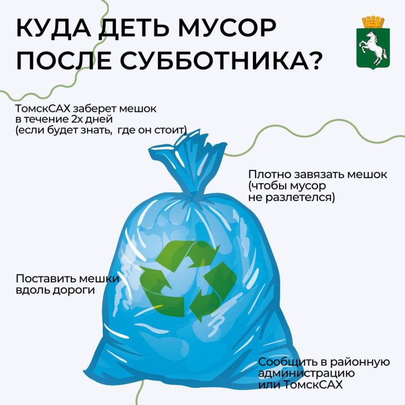 О нем нужно сообщить в коммунальные службы.МБУ «Томск САХ» будет забирать мешки с центральных городских магистралей, подрядчики районных администраций заберут мешки со второстепенных улиц.Телефоны районных администраций:Кировский район - 56 40...