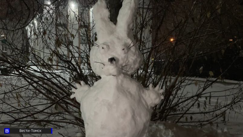 Сотрудники ГТРК "Томск" слепили снежного зайца в перерывах между эфирами.