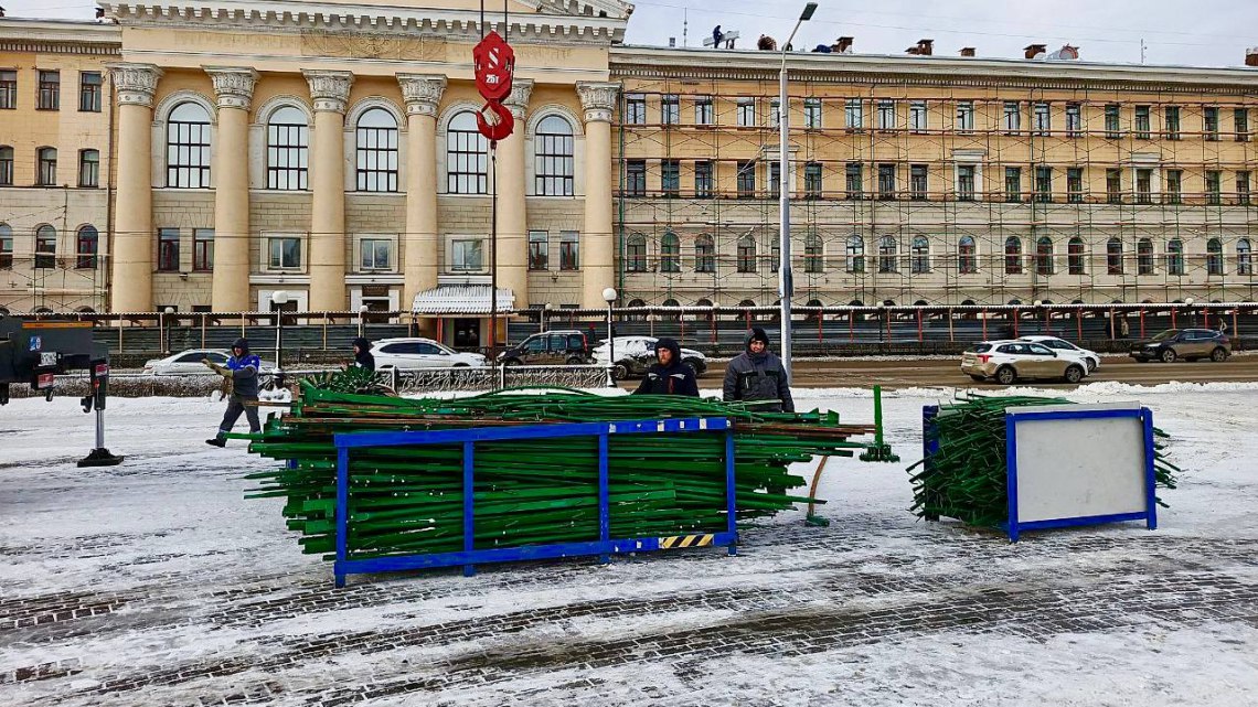 Главную томскую елку начали собирать на Новособорной площади