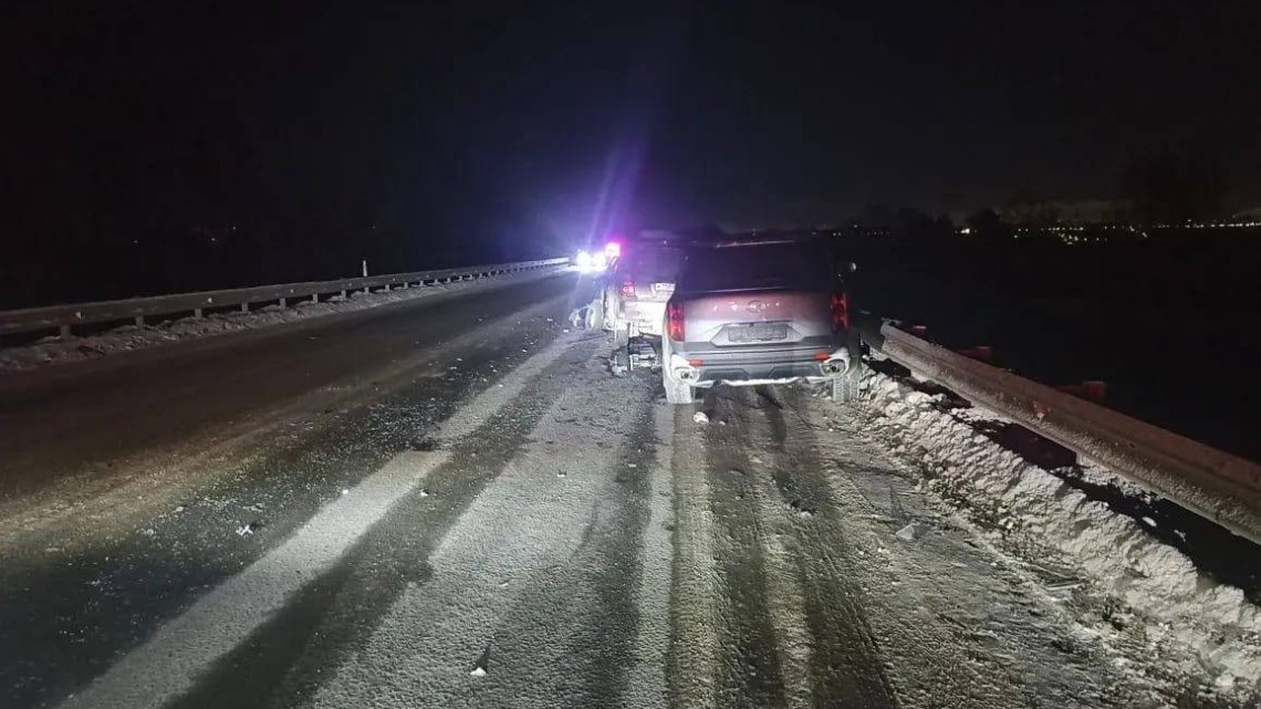 44-летний водитель "Тойота" выехал на полосу встречного движения и столкнулся с автомобилем "Фольксваген". После удара "Тойота" продолжила движение и врезалась во встречный "Джак" под управлением 33-летнего мужчины. В свою очередь, "Фольксваген", получивший удар, также продолжил движение и столкнулся с автомобилем "Хонда", ехавшим по встречной полосе.
