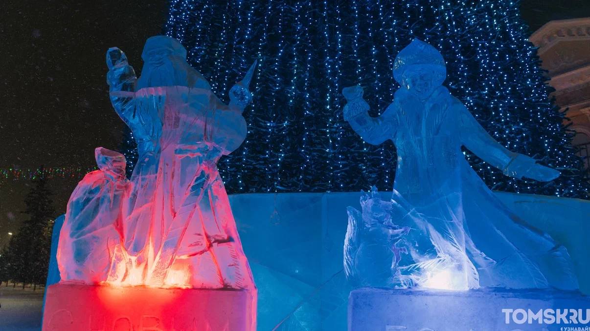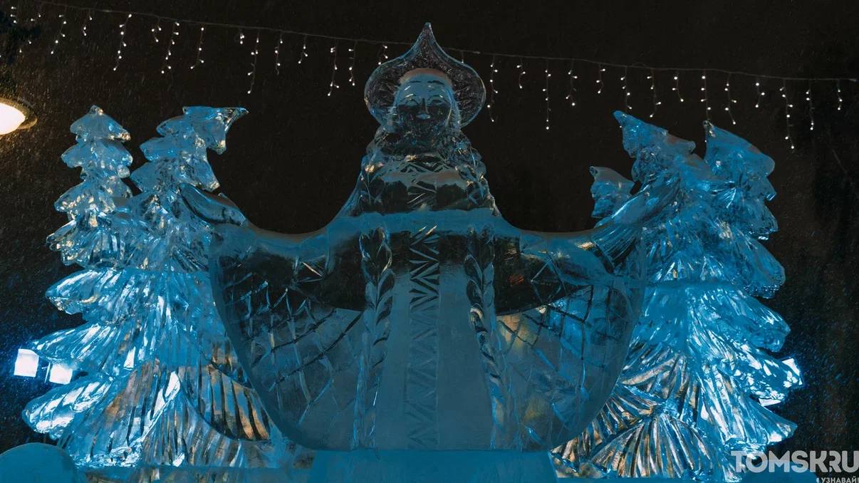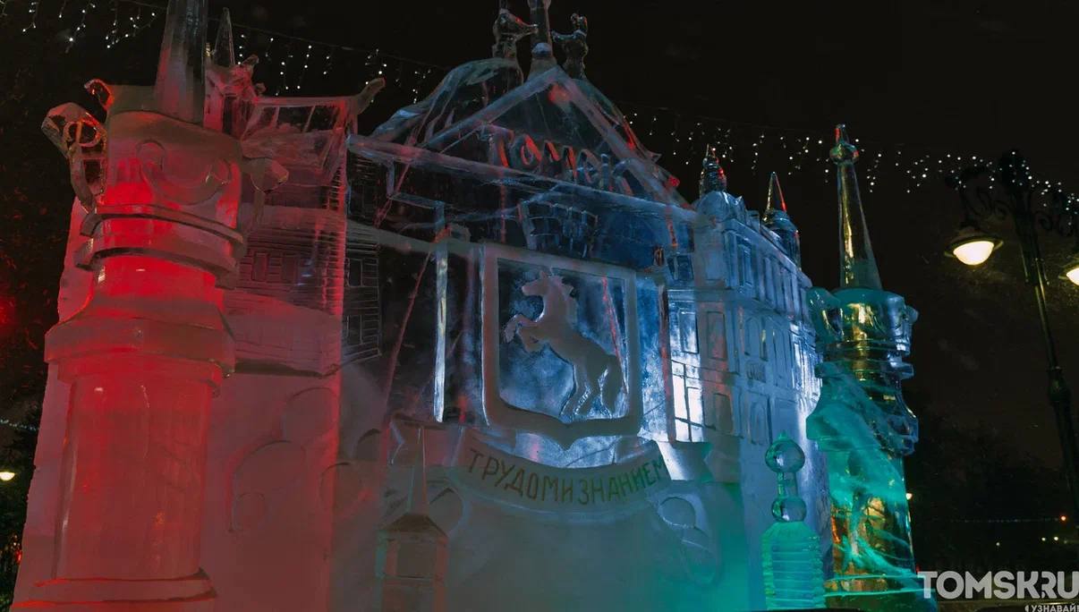 На главной площади Томска завершили создание ледяных скульптур фестиваля «Хрустальный Томск — 2025».