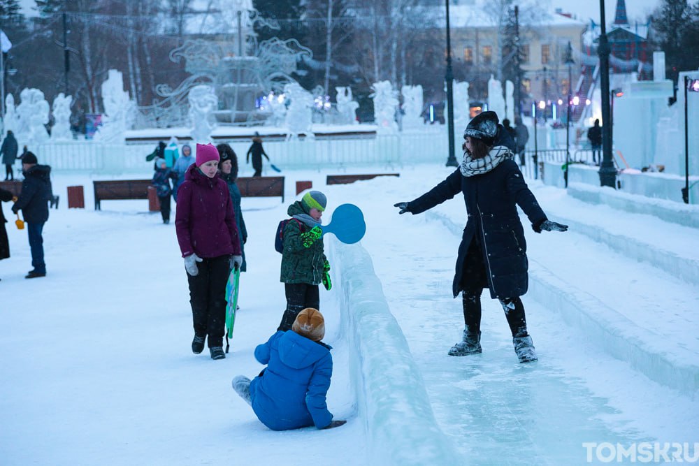 В Томске снова разрешили кататься с ледяных горок. Ледовые спуски на площади Ново-Соборной и в Сквере студенческих отрядов официально открыты для посетителей.