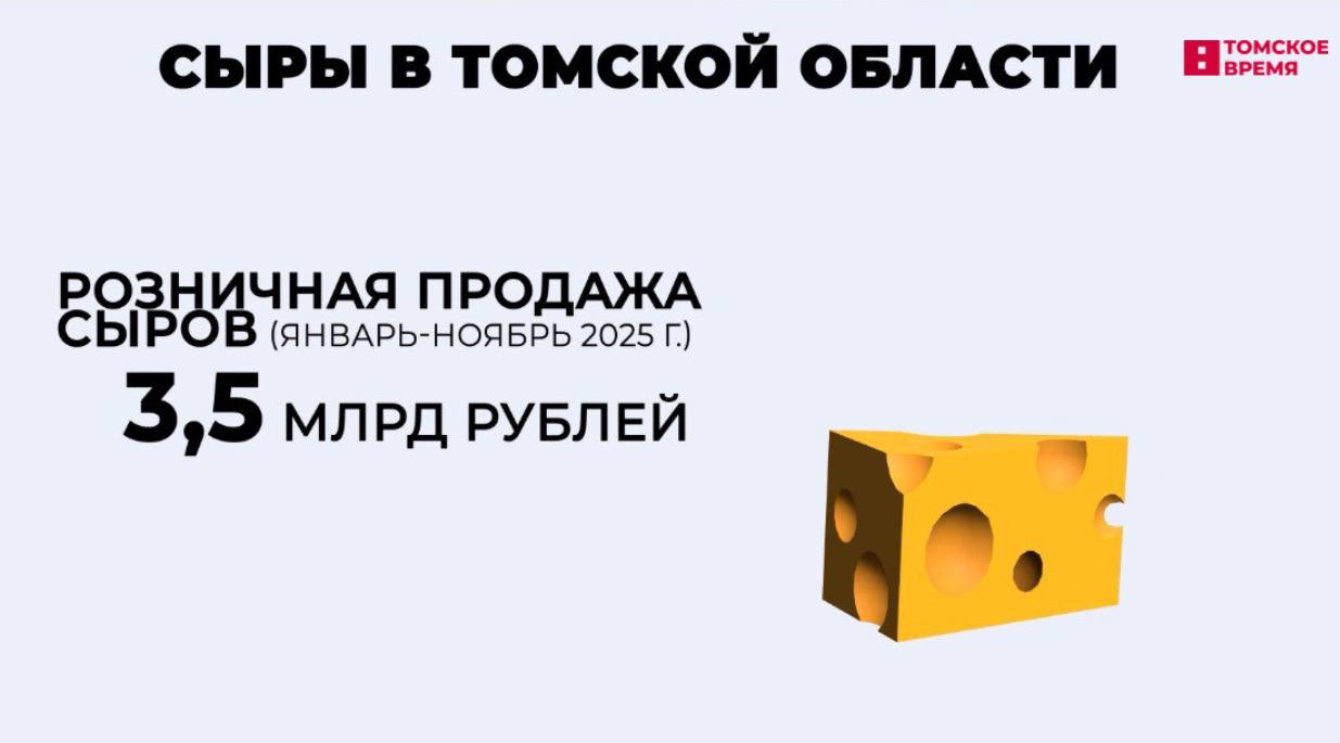 Растёт объём продаж жирных сыров. В 2025 году показатель составил 3,5 млрд рублей (рост на 1,6%).