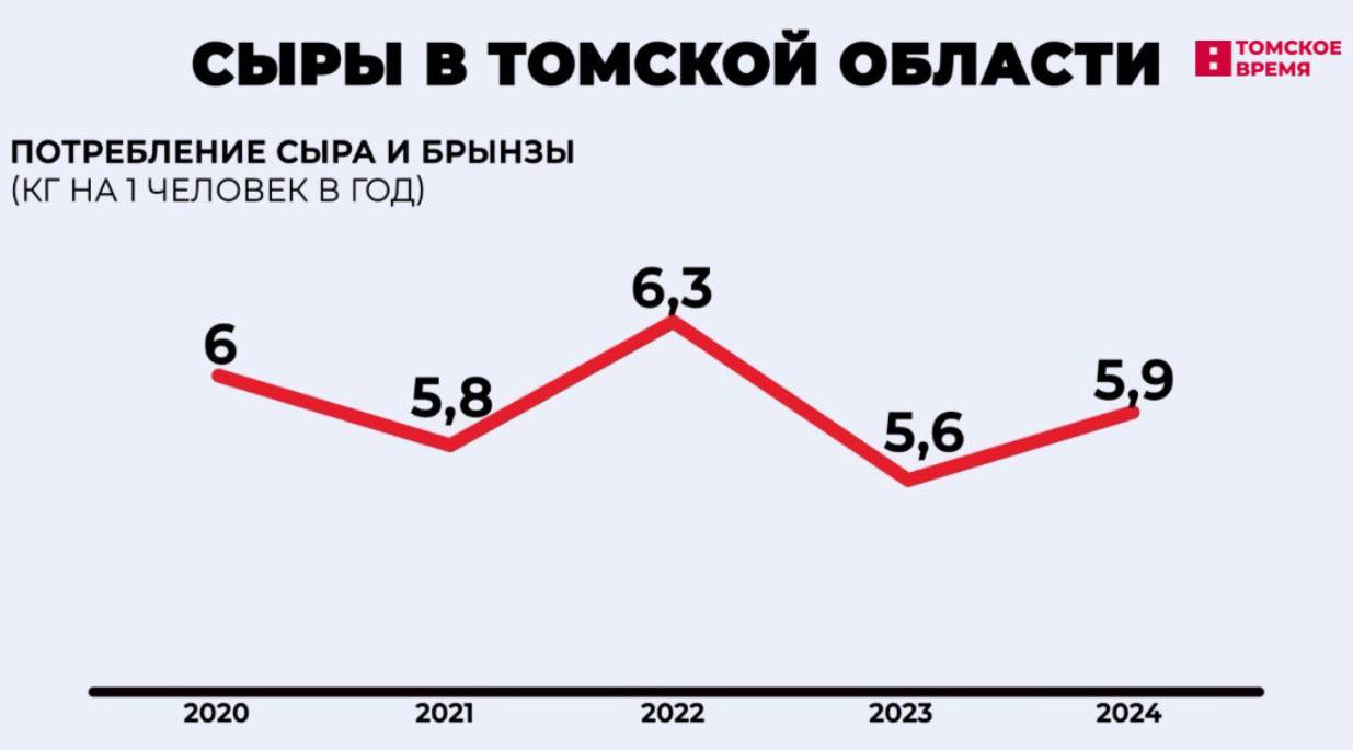 Почти 6 кг сыра и брынзы в среднем съедает один житель Томской области.