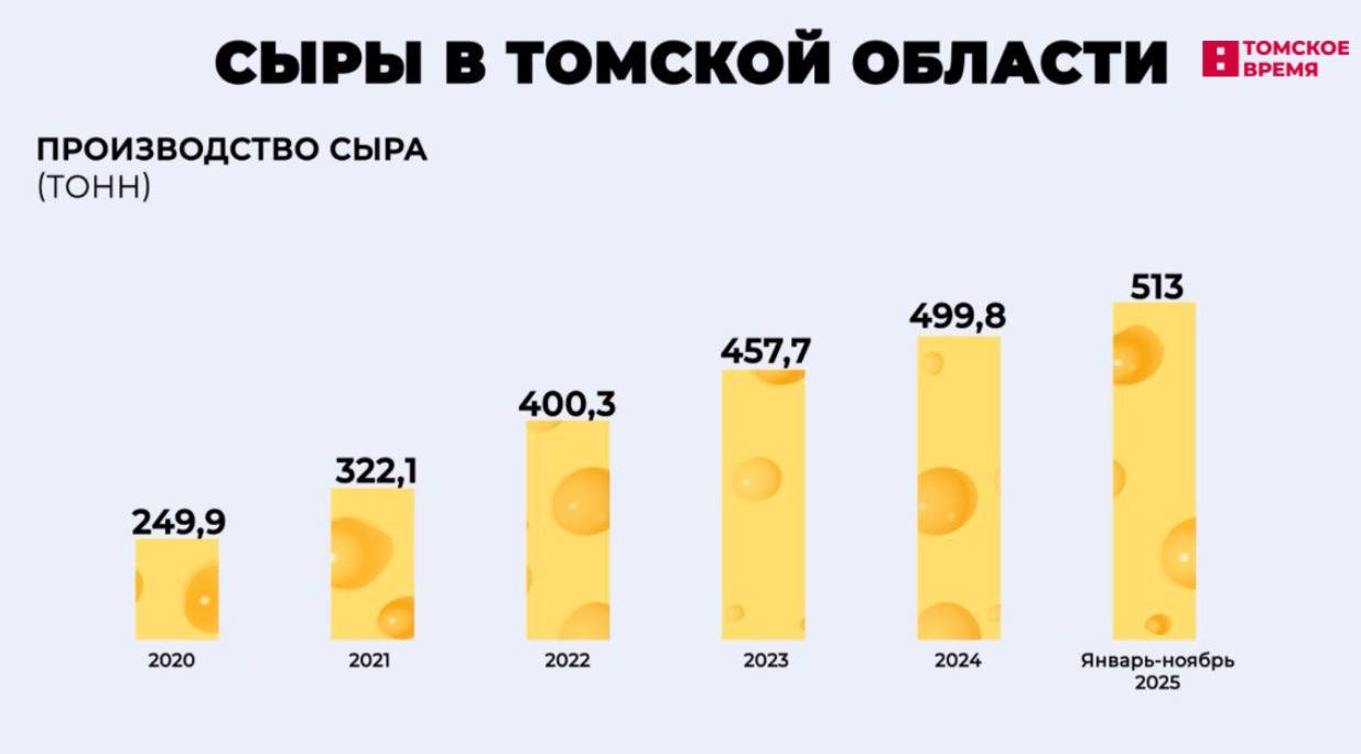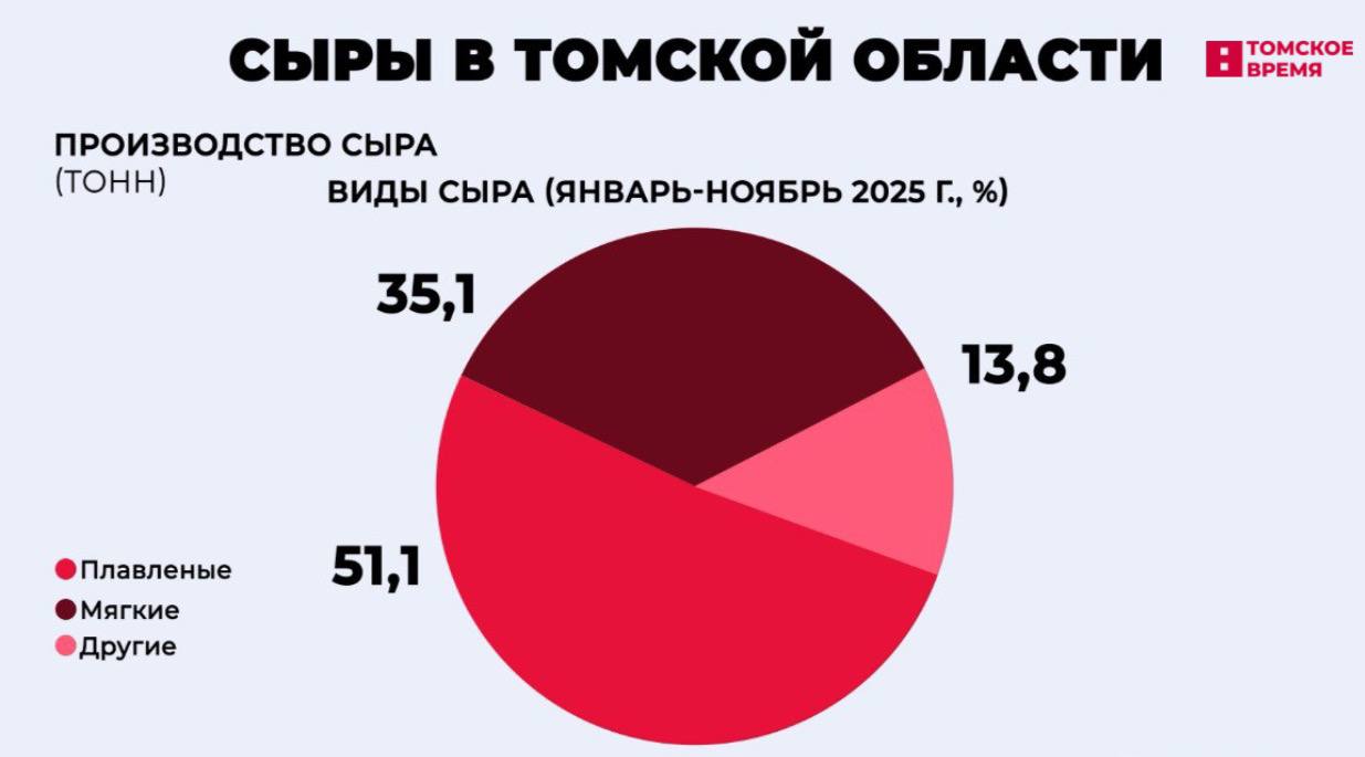 В 2025 году томские компании произвели 513 тонн сыра. Большая часть из них – плавленые.
