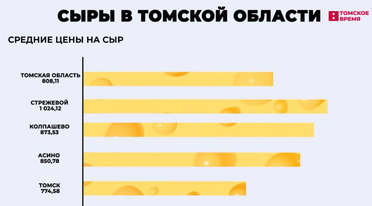Самые низкие цены на твёрдые, полутвёрдые и мягкие сыры были в Томске, а на плавленые – в Асине.