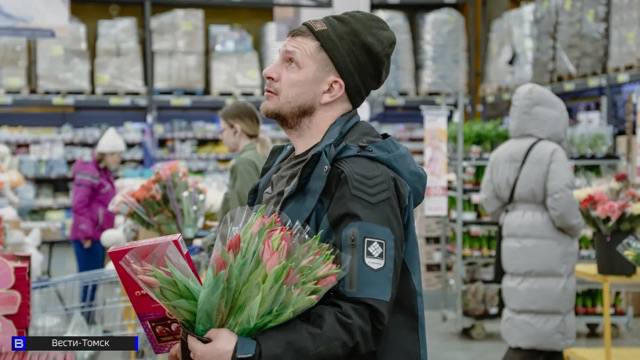 В воскресенье, 8 марта, улицы Томска с самого утра заполнились людьми с пышными букетами и праздничными упаковками.