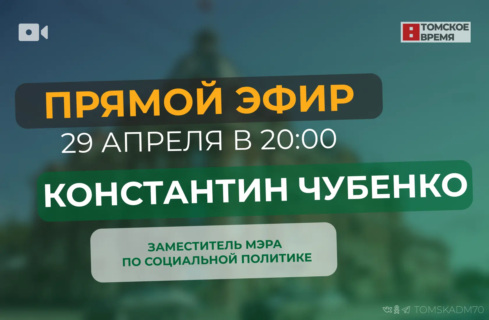 Сегодня, 29 апреля, заместитель мэра по социальной политике Константин Чубенко ответит на вопросы жителей города в ходе прямого эфира на телеканале «Томское время». Начало – в 20.00.