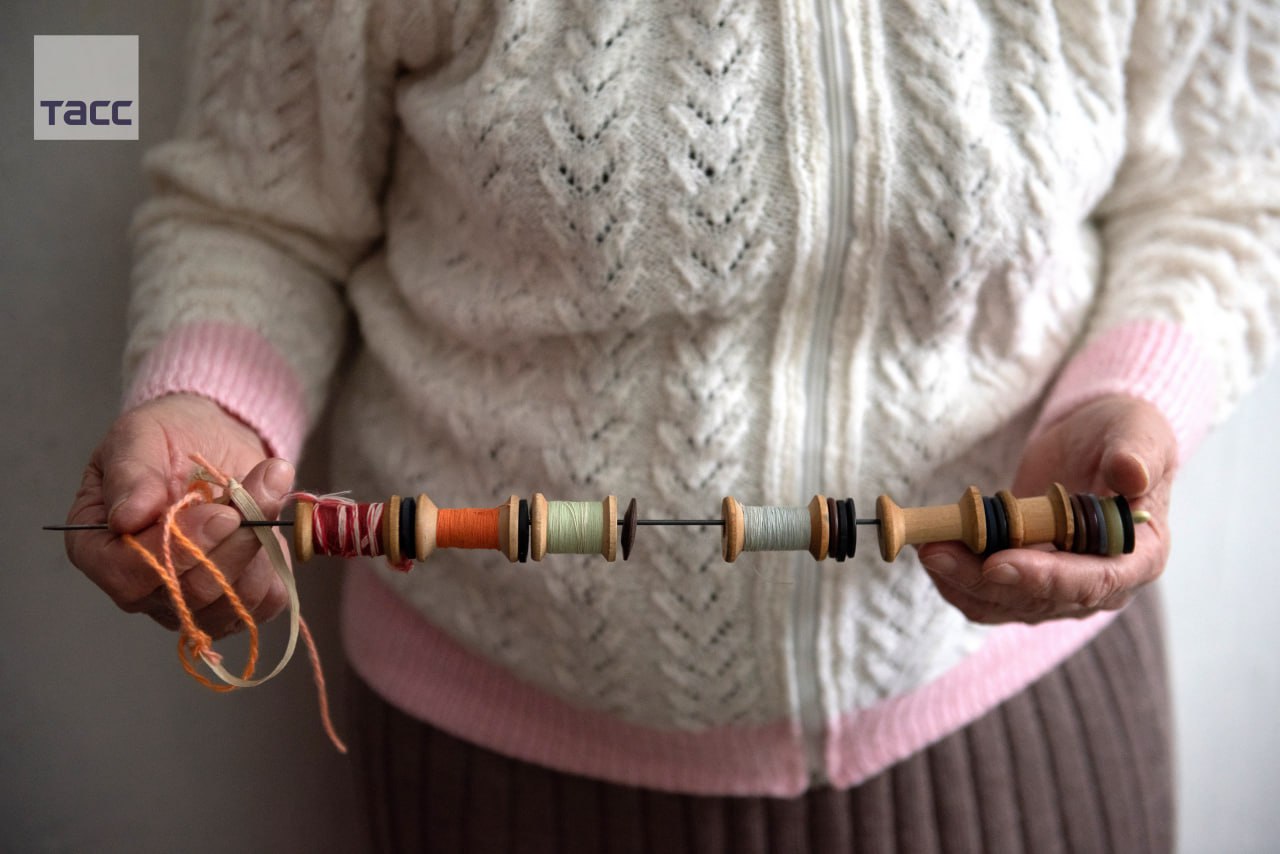 Томская пенсионерка Александра Поберешникова вяжет носки для детей из Дома ребенка. Женщина почти ничего не видит и управляется с пятью спицами не глядя.