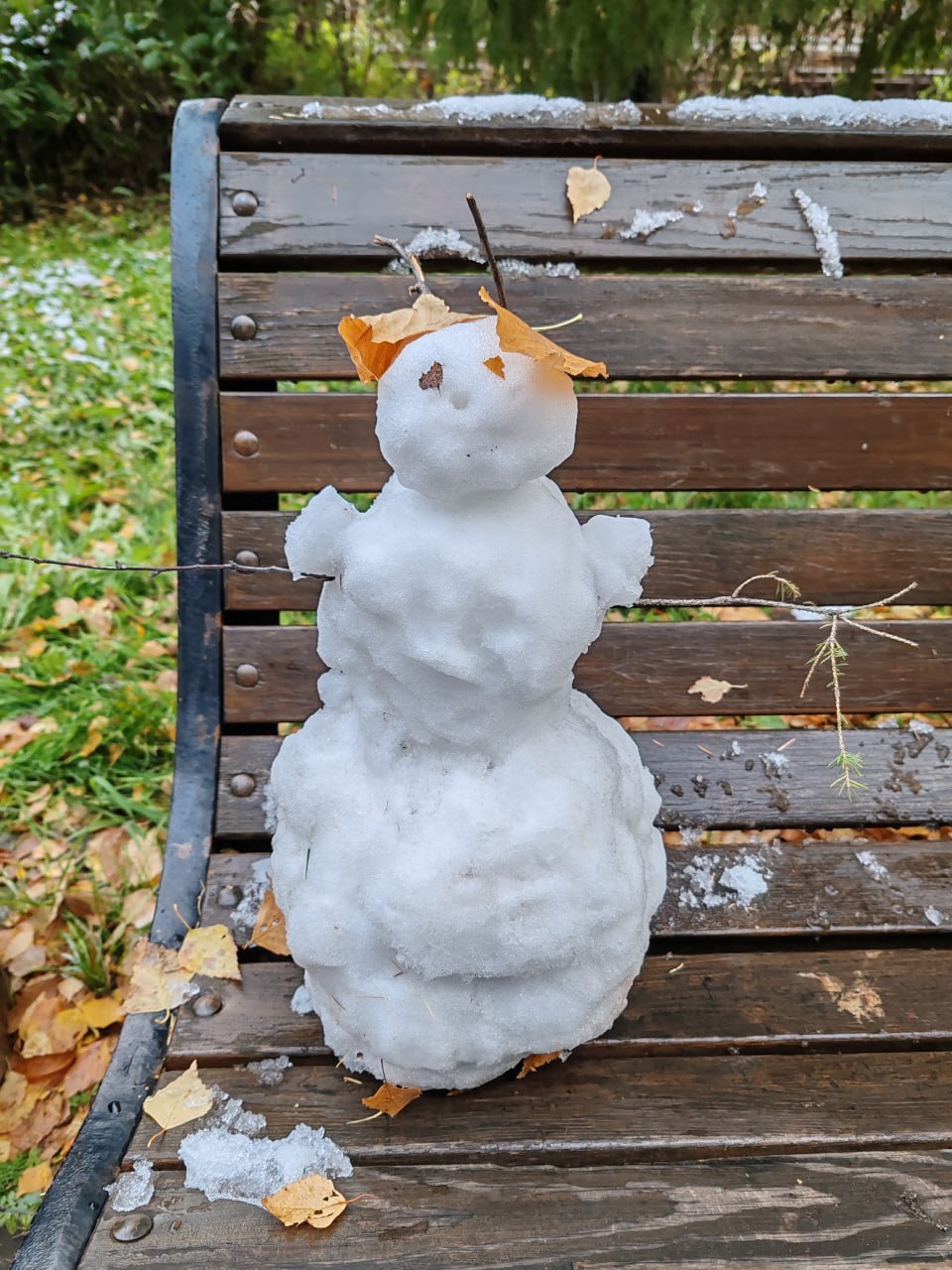Совсем недавно в Томске было солнце и +20, а теперь — снеговики на лавочках