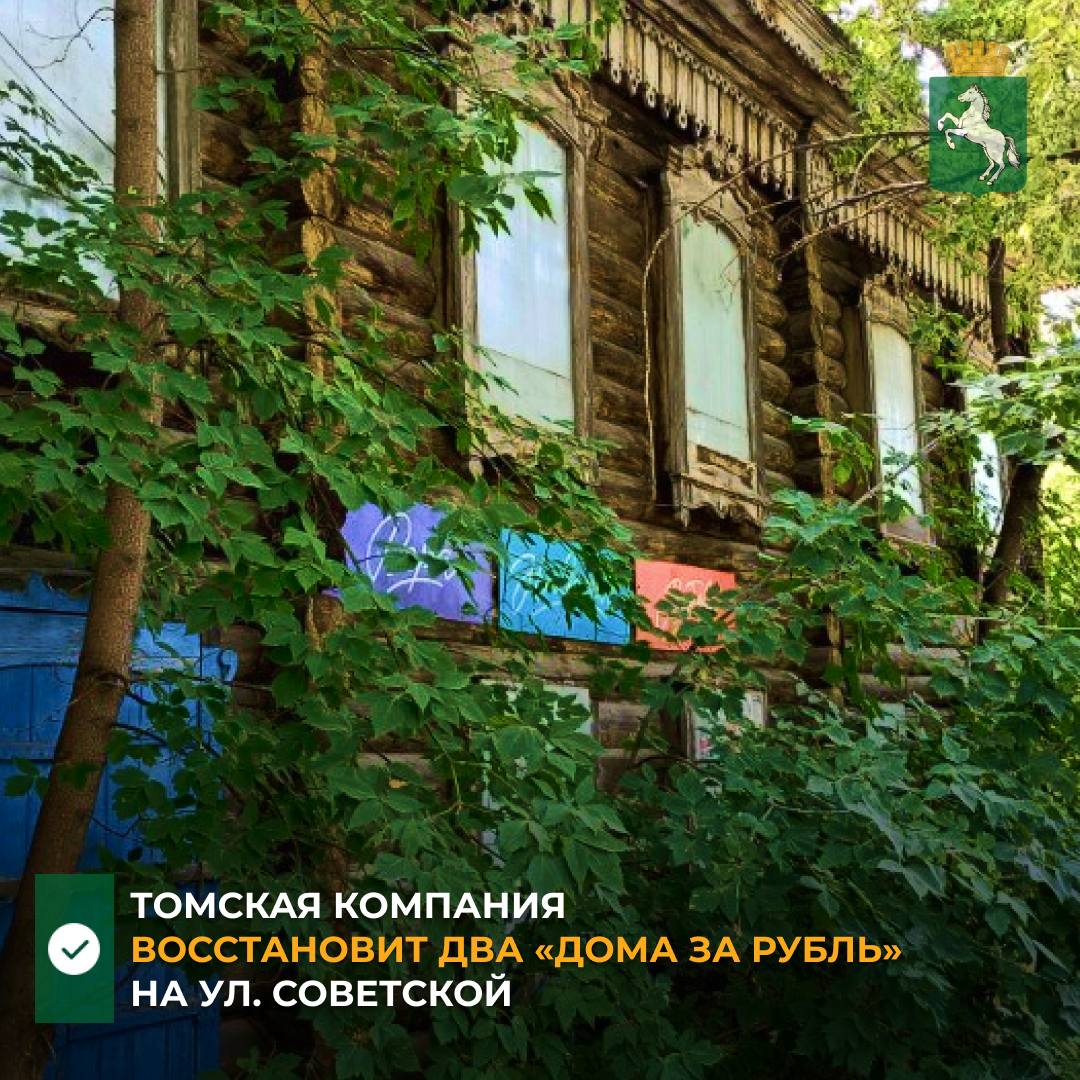 По информации департамента управления муниципальной собственностью, по результатам торгов по программе «Дом за рубль» заключены договоры аренды домов по ул. Советская, 8 и 8б. Восстановлением двух зданий, являющихся объектами деревянного зодчества, займётся ООО «Восторг».