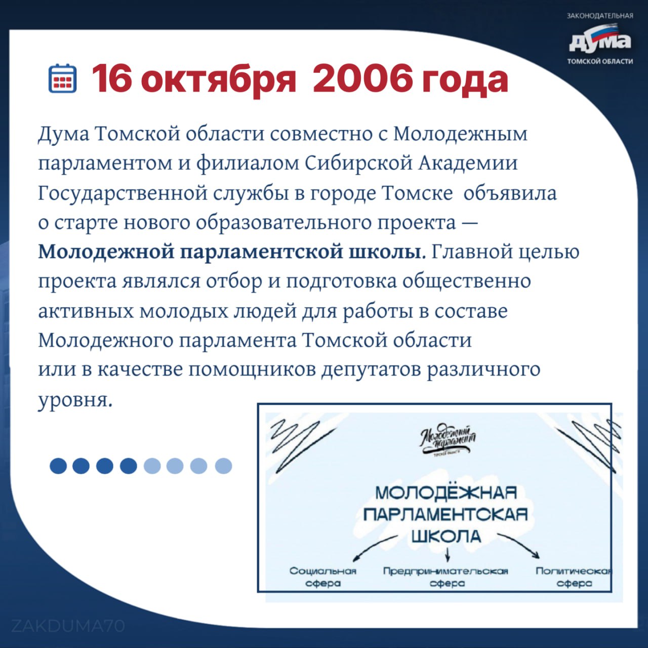 Целый год мы регулярно публиковали материалы, посвящённые ключевым событиям и датам в истории Законодательной Думы Томской области. Надеемся, публикации были интересны и полезны подписчикам, и, возможно, послужили источником новых знаний для студентов, журналистов или общественников.