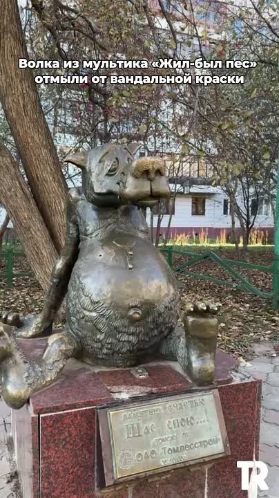 В Томске вандалы испортили известный «Памятник счастью» — скульптуру волка из мультфильма «Жил-был пес», установленную в сквере на Шевченко, 19/1. Неизвестные разрисовали фигуру желтой краской.
