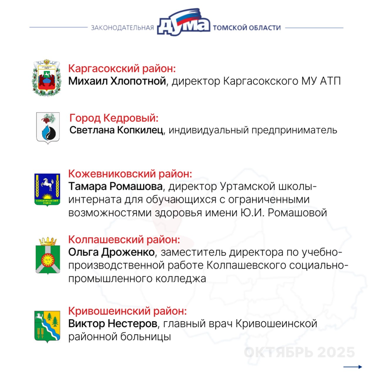 Избранием председателя думы Кожевниковского района в Томской области завершилось формирование руководящих органов всех муниципальных дум, депутаты которых были избраны в ходе сентябрьской избирательной кампании.