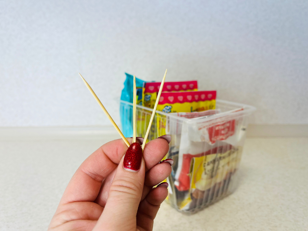 Настоящая находка для тех, у кого давно завалялись упаковки зубочисток. Как проявить фантазию? Просто подворачивайте открытые края упаковки, а затем аккуратно фиксируйте их зубочисткой. Это простое решение обеспечит надёжную защиту от попадания влаги и сохранит аромат специй. Стоит лишь быть внимательными, чтобы повторное вскрытие не загрязняло упаковку.