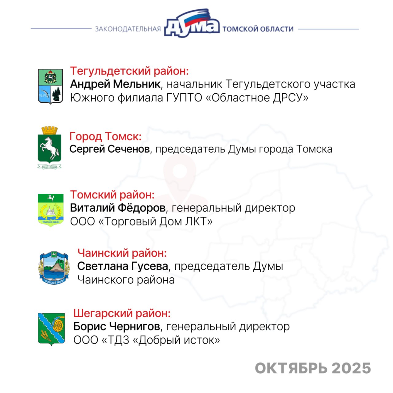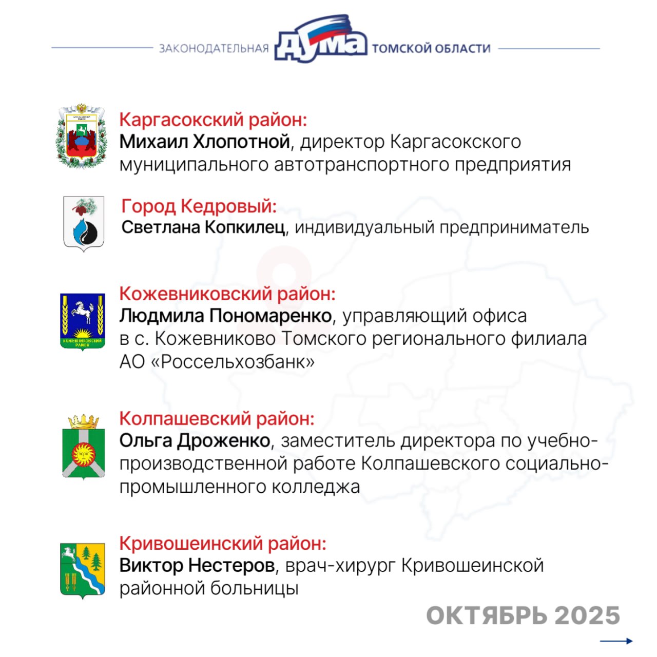 Избранием председателя думы Кожевниковского района в Томской области завершилось формирование руководящих органов всех муниципальных дум, депутаты которых были избраны в ходе сентябрьской избирательной кампании.