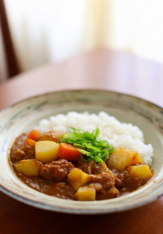Чтобы приготовить карри, сначала обжарить лук, морковь и картошку на сковороде до прозрачности лука. Затем добавить мясо, обжарить до золотистой корочки и залить водой. После 15-20 минут тушения вмешать кубики карри и подождать, пока соус загустеет. Подается на горячем рисе с зелёным луком.