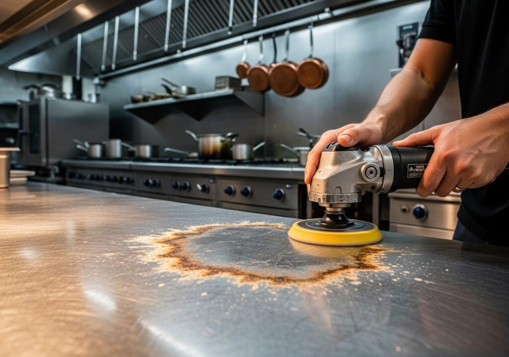 Кислоты, попавшие на металлическую столешницу, могут нанести значительный ущерб, оставляя следы, которые невозможно удалить обычными чистящими средствами. Замена такой столешницы может обойтись в сумму от 30 000 рублей, не считая простоя заведения. Особенно это актуально для уникальных или дизайнерских поверхностей. Но есть ряд эффективных методов, которые позволят восстановить их без больших затрат.