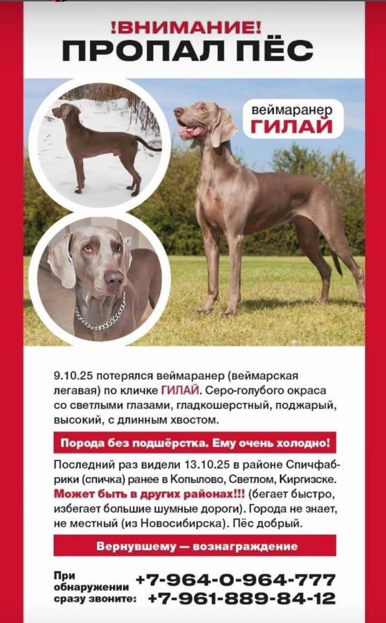 В поисках друга: новосибирец ищет в Томске свою пропавшую собаку породы веймаранер.