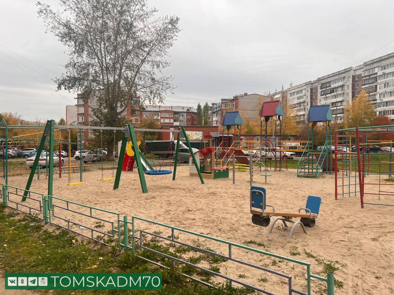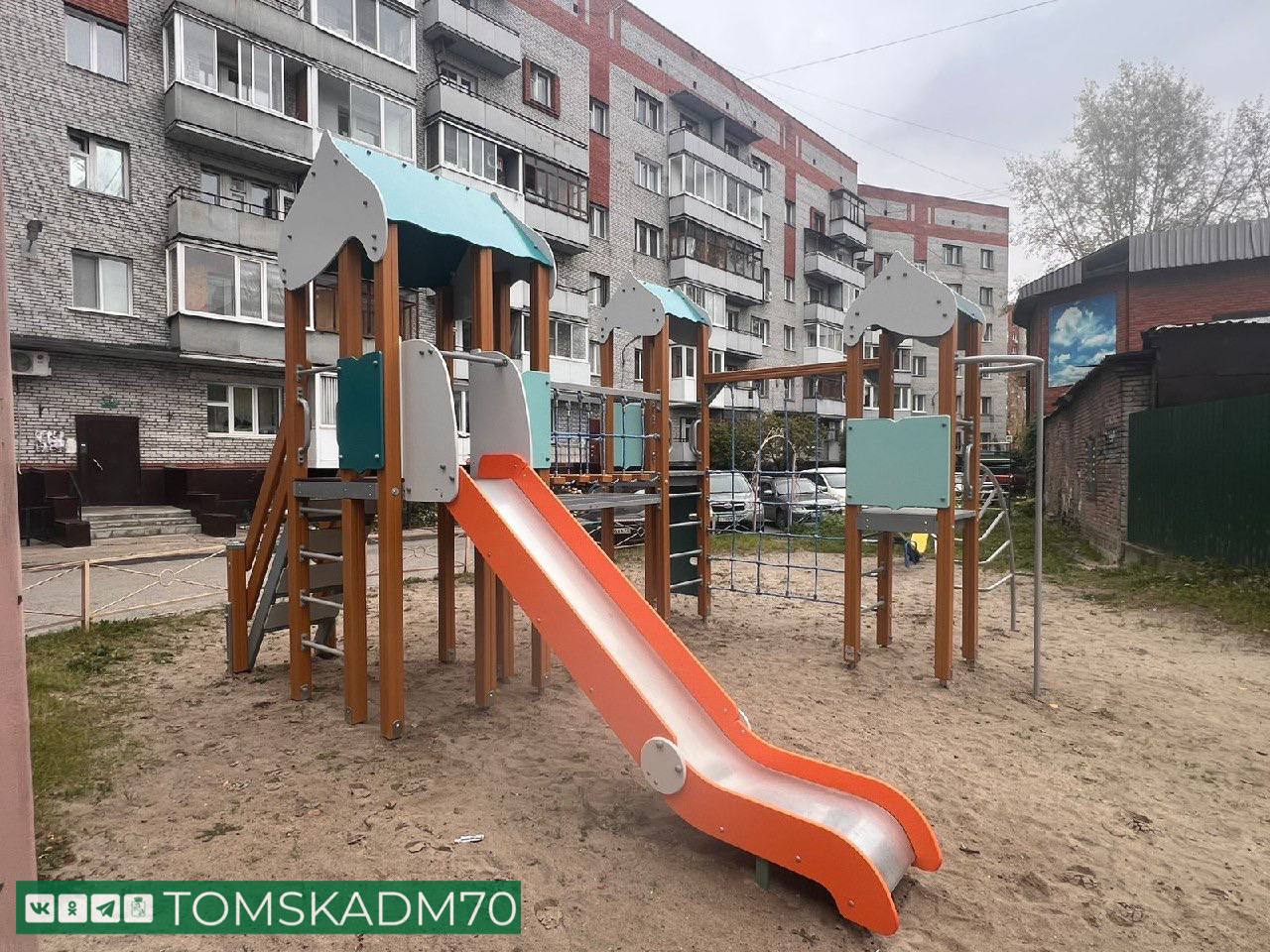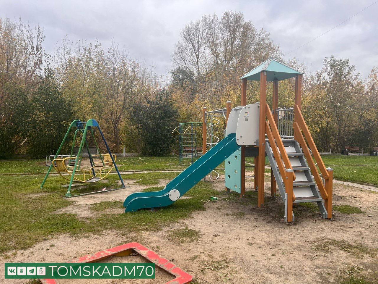 По сообщению администрации Ленинского района Томска, специалисты установили новые элементы игрового оборудования на детских площадках.